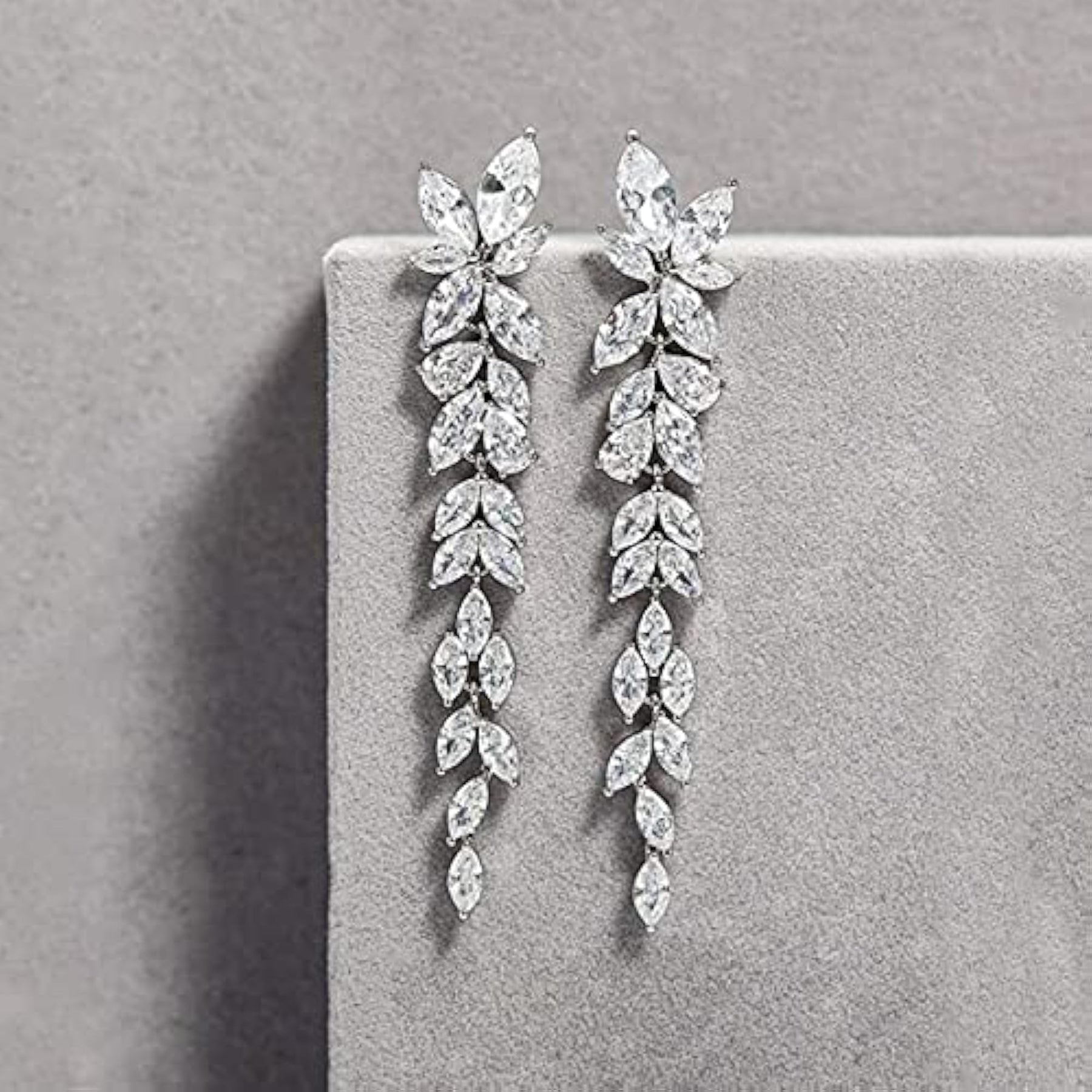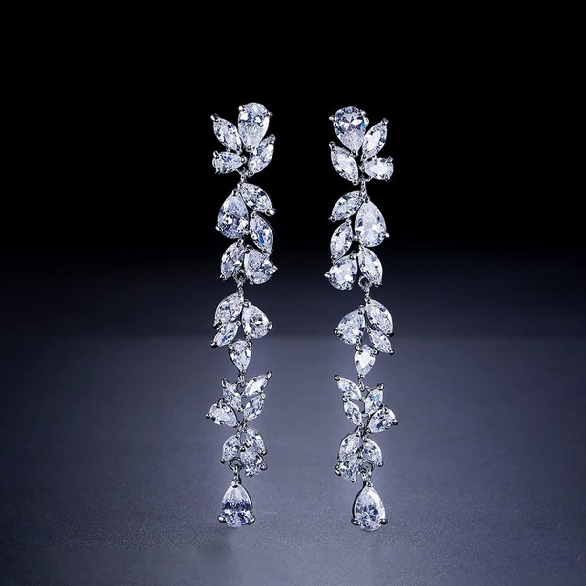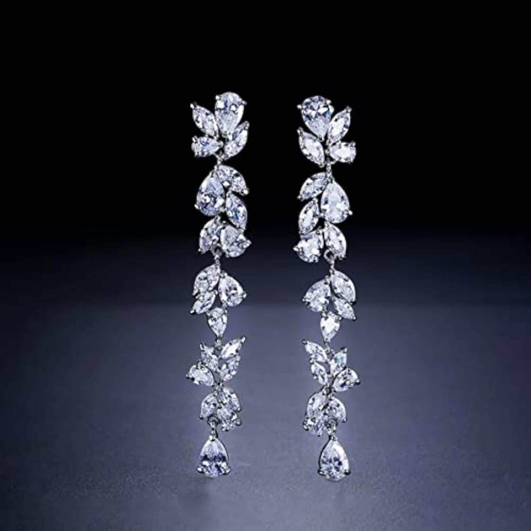 Elegant and eye-catching dangle earrings featuring crystal flower design.