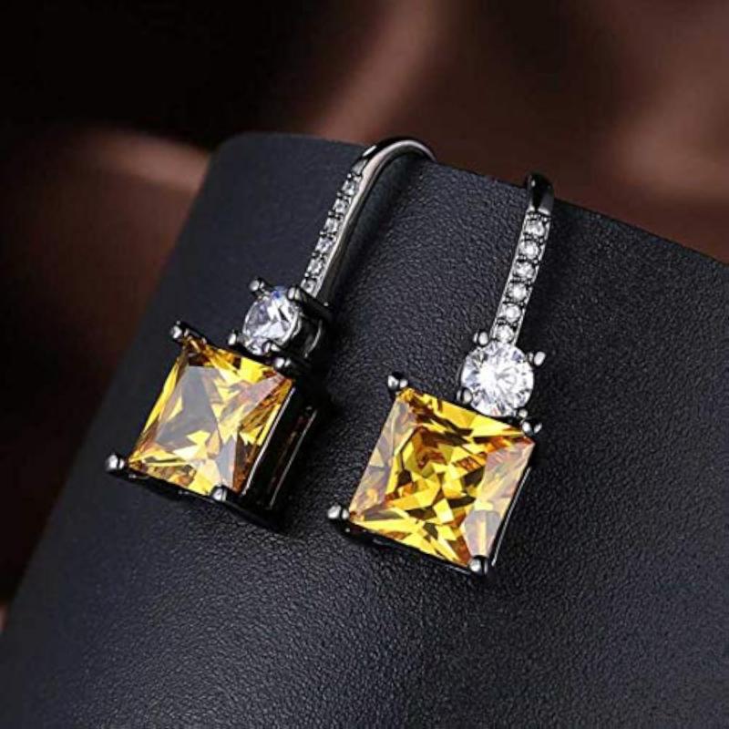 Elegant and stylish drop earrings featuring a stunning crystal geometric design in silver plating.