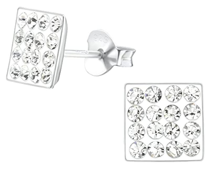 Elegant crystal square stud earrings made of 925 sterling silver. Perfect for adding a touch of sparkle.
