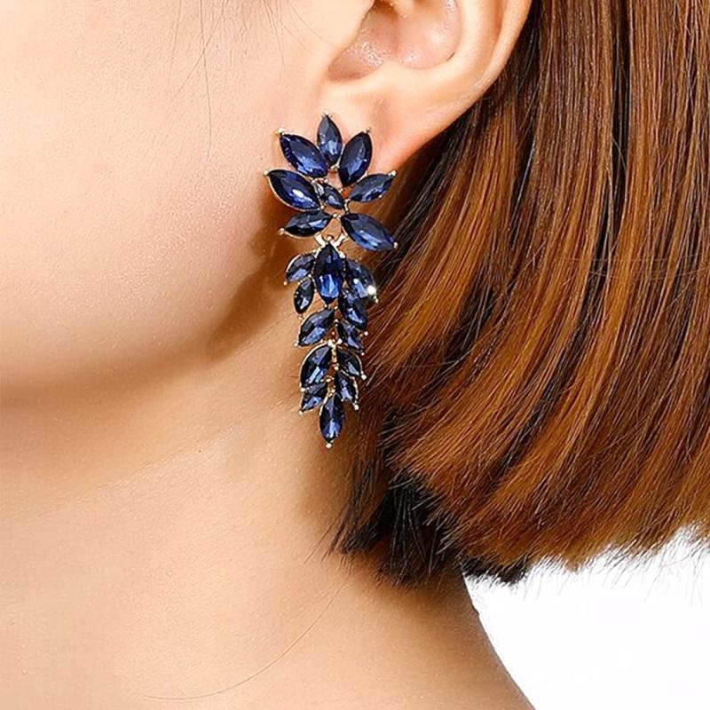 Add a touch of elegance to your outfit with these stunning crystal stone drop earrings. The leaf-shaped design makes them perfect for any occasion, from everyday wear to special events.