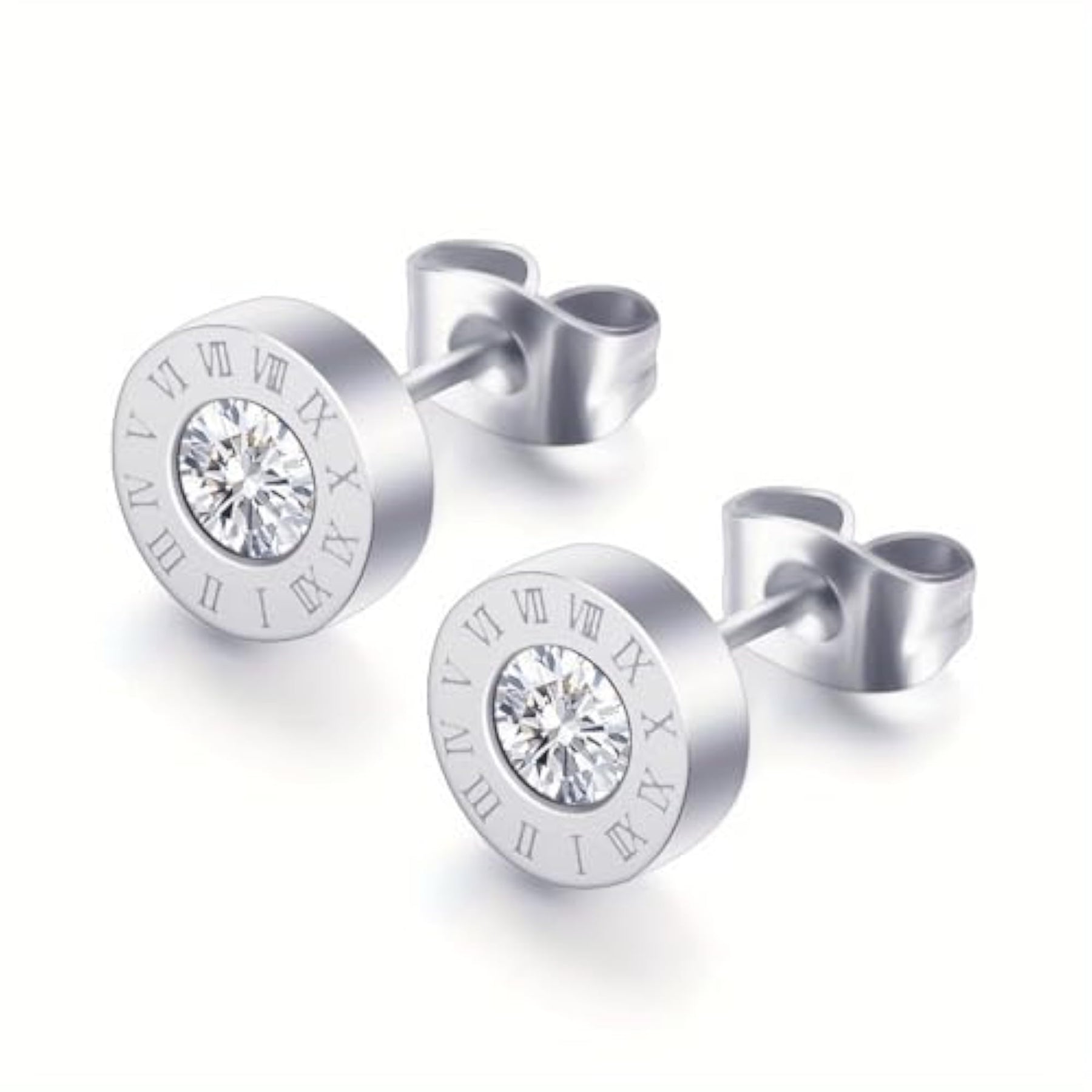 Add a touch of sparkle to your outfit with these silver-plated crystal stud earrings featuring a pushback closure for secure wear.