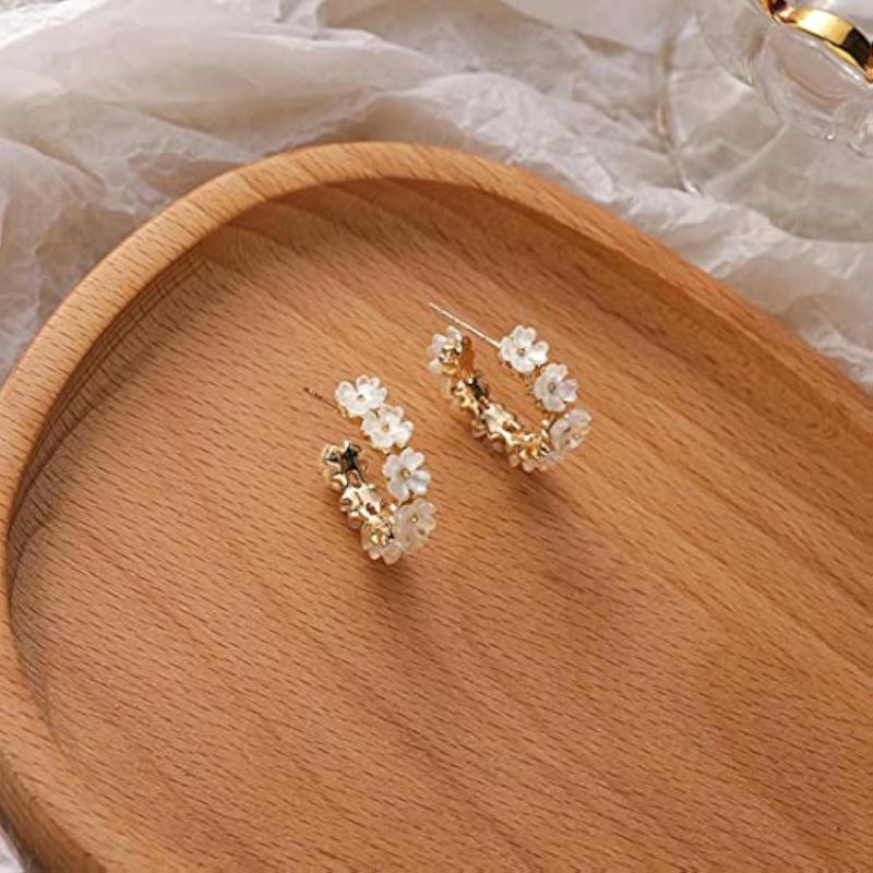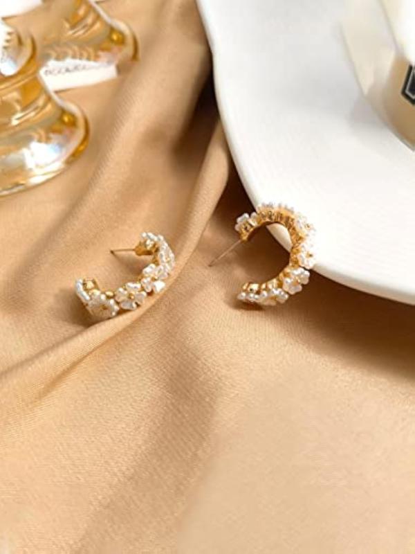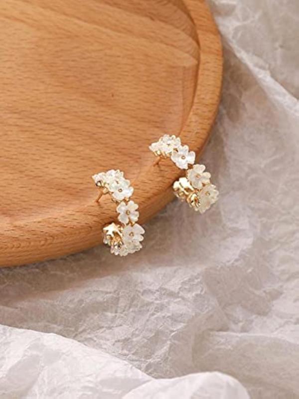 Elegant floral crystal studded half bali style clip-on hoop earrings for a touch of glamour.