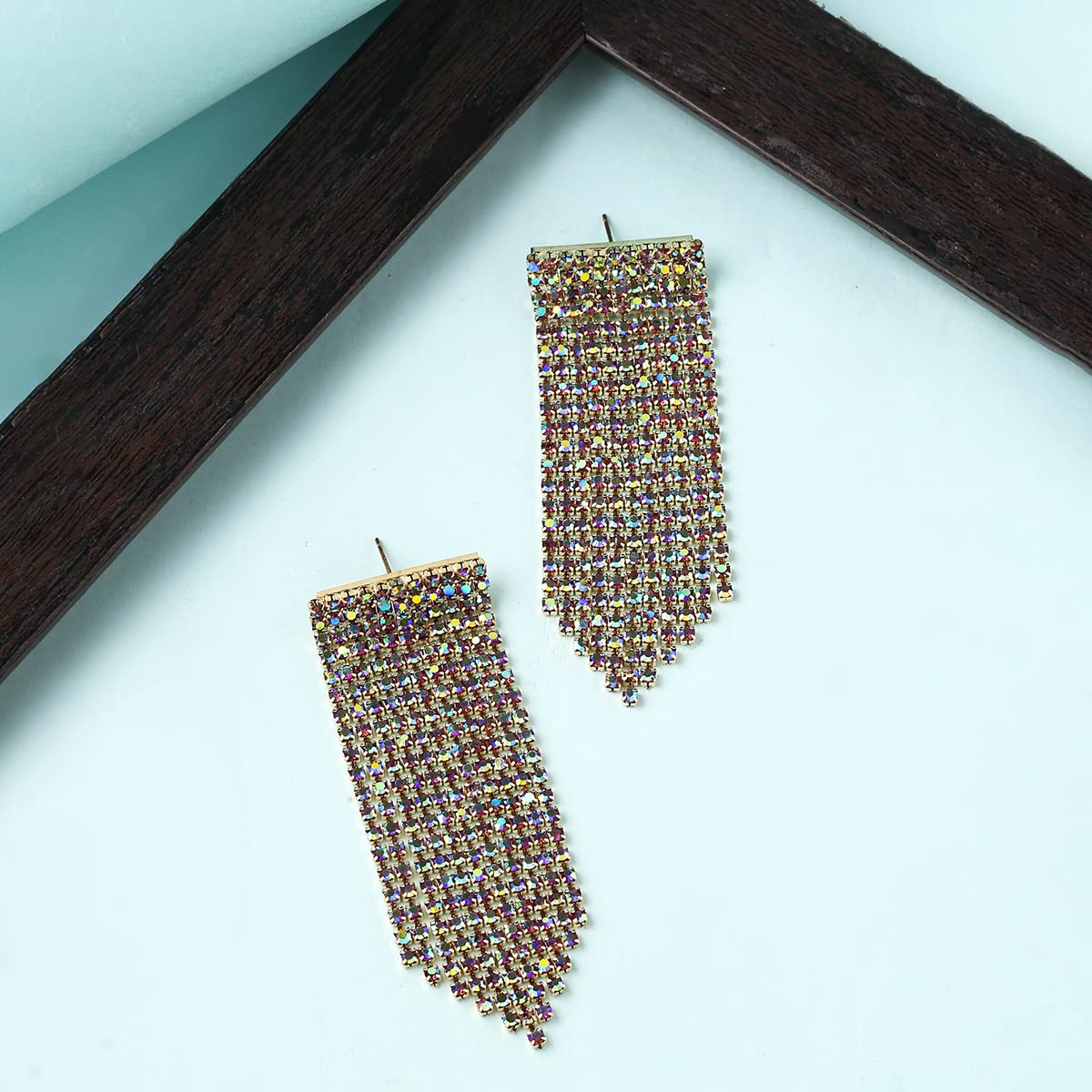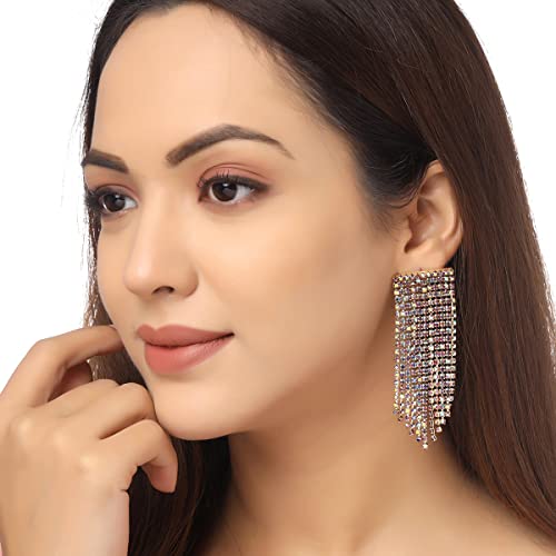 Elevate your look with these sparkling crystal studded earrings on linear chains.