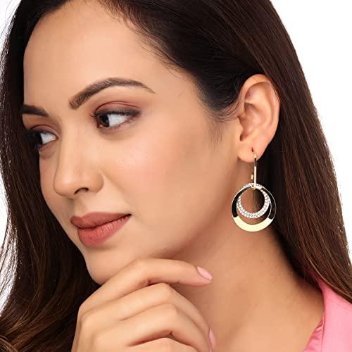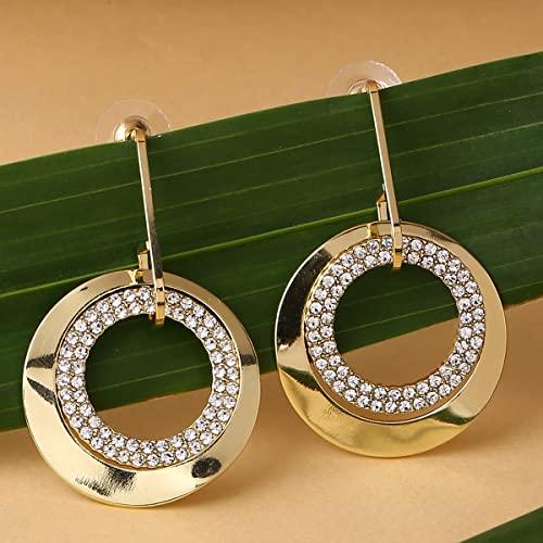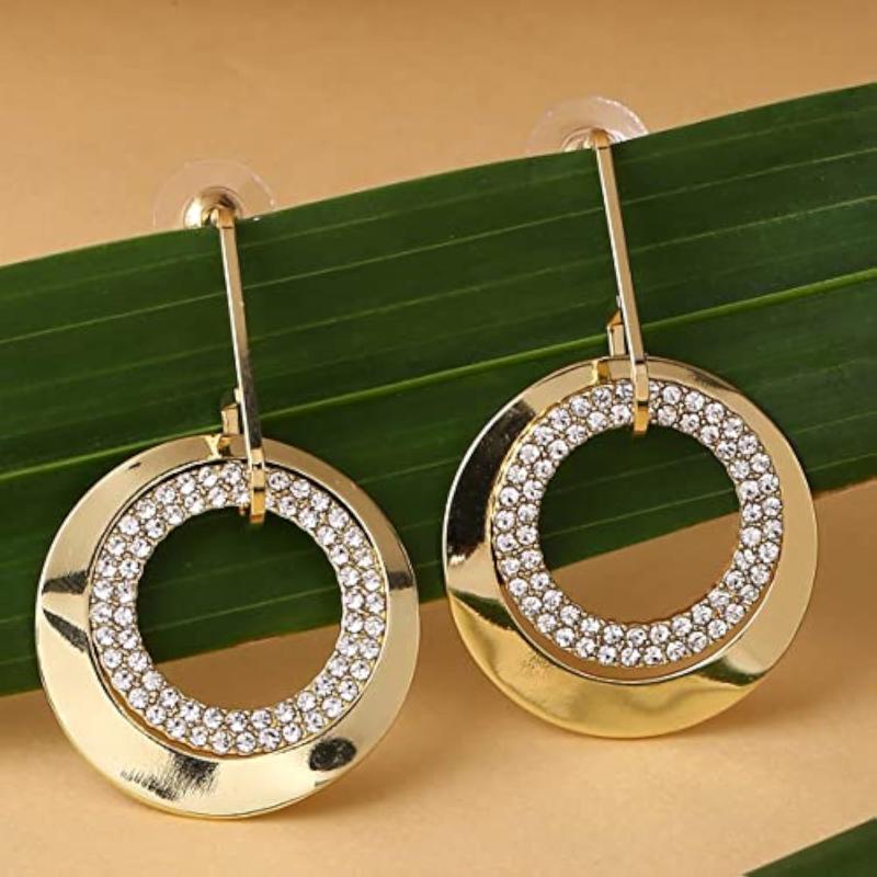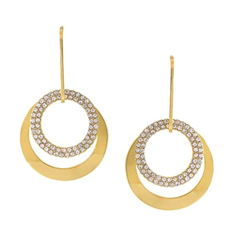 Elegant drop earrings with plated crystal double open circle design.