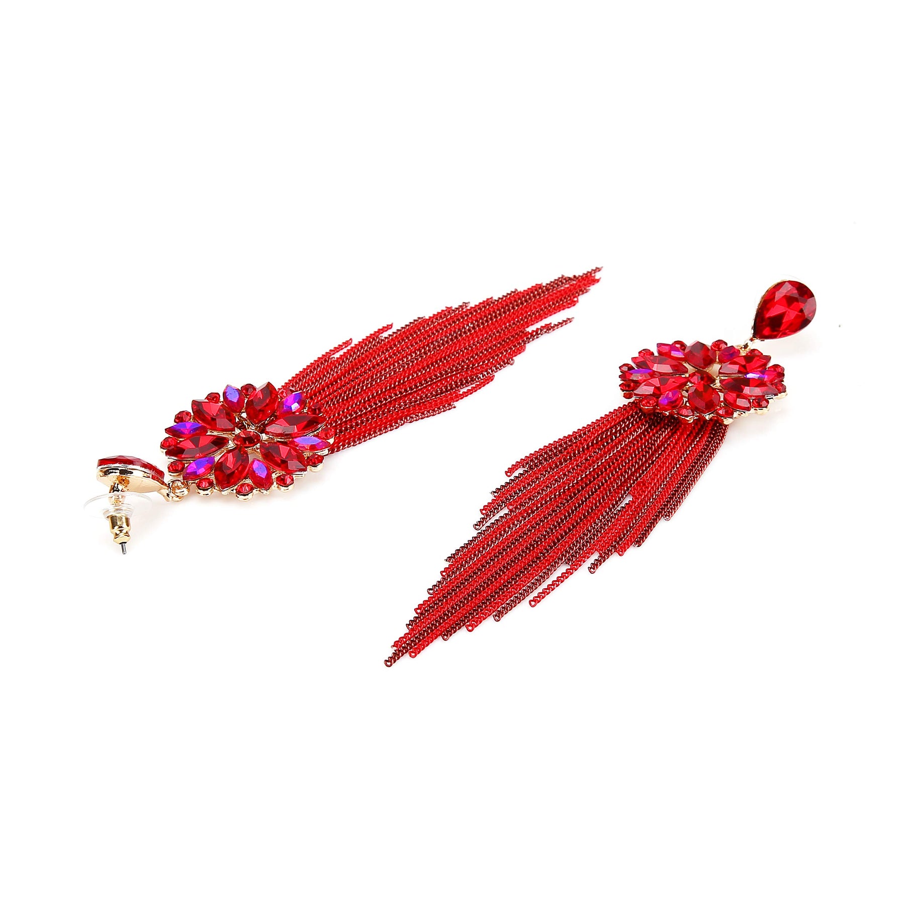 Add a touch of elegance to your ensemble with these stunning crystal tassel earrings.