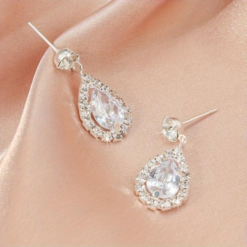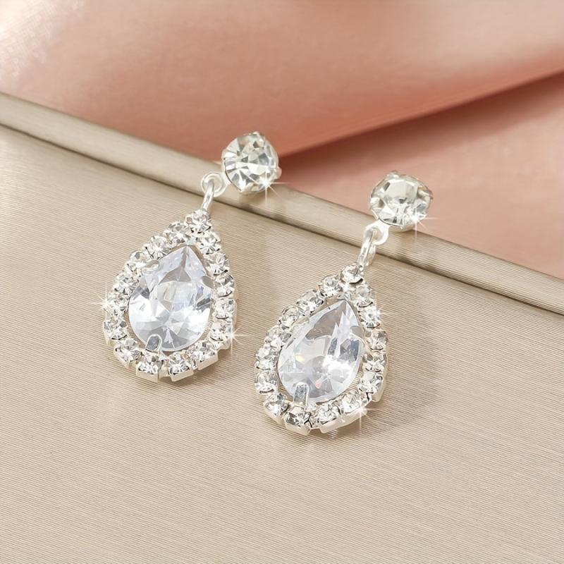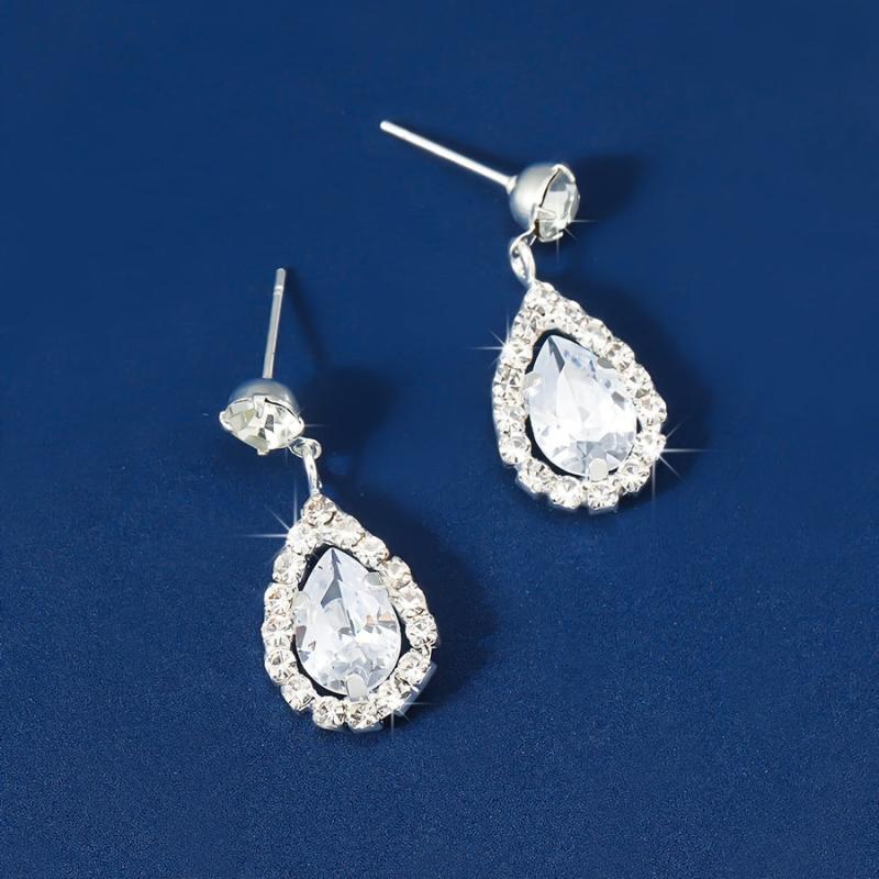 Add a touch of sparkle to any outfit with these stunning earrings that mimic the luxurious look of crystal zirconia. The water drop design adds a touch of elegance to your ensemble.