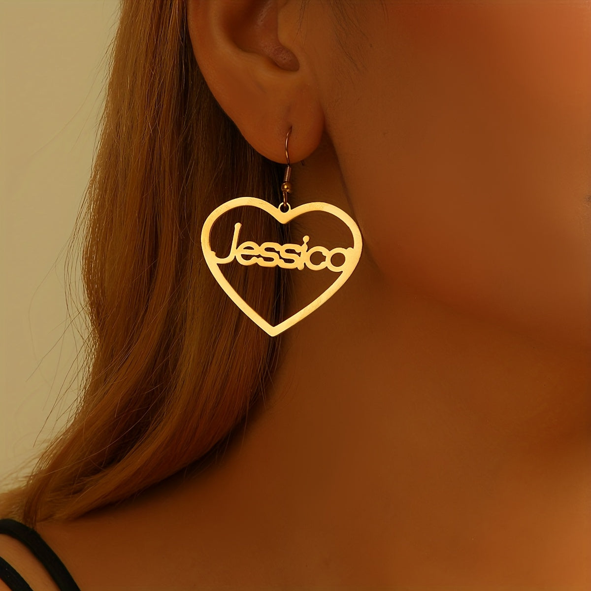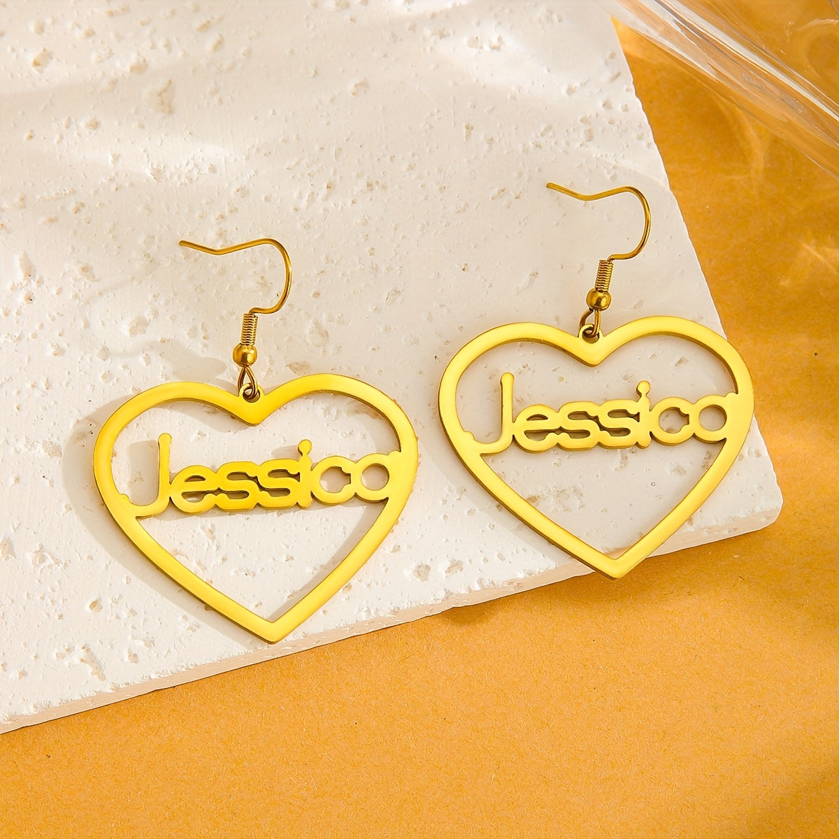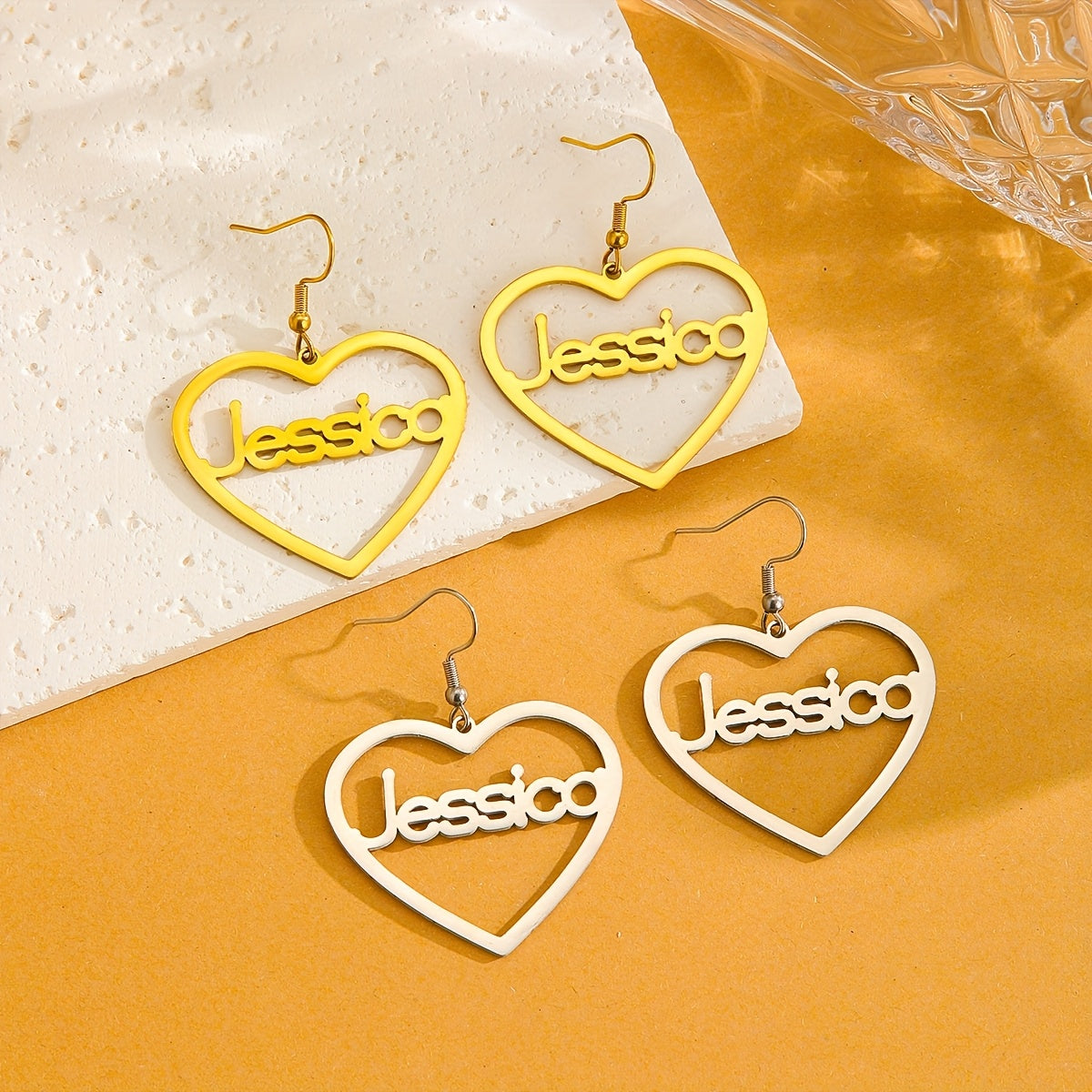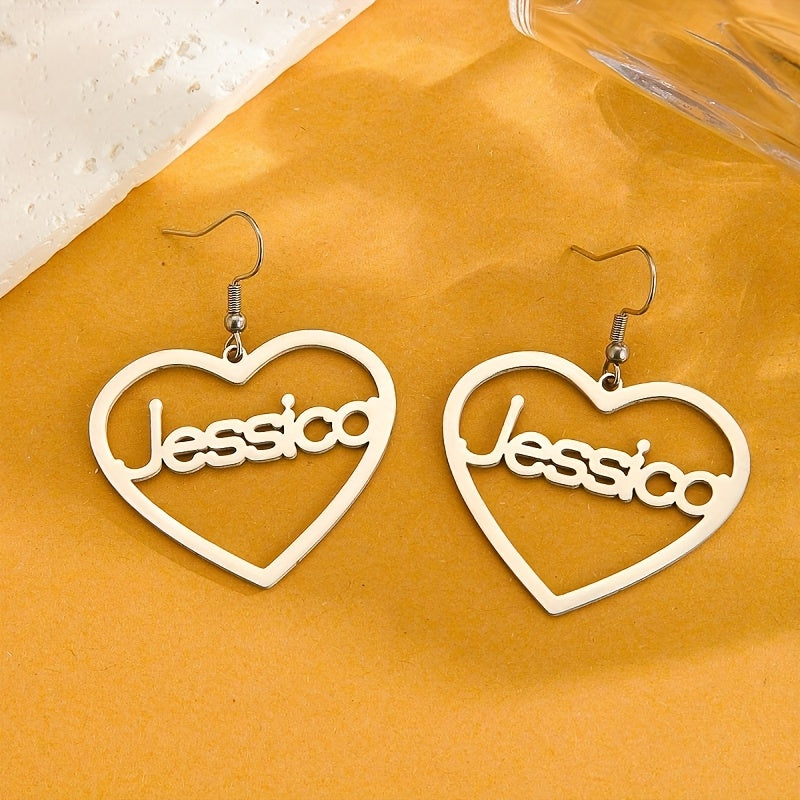 Surprise your girlfriend with these customized name dangle earrings featuring a heart pendant. Made of high-quality stainless steel, these earrings make the perfect gift.