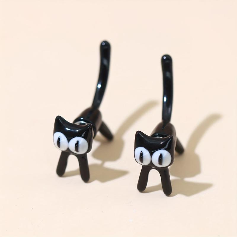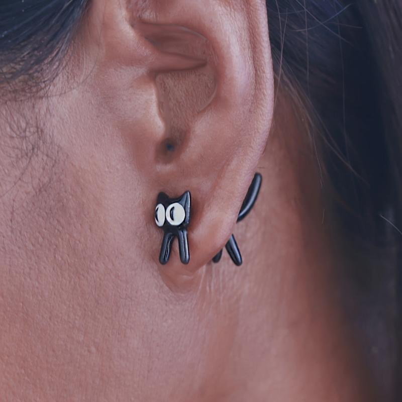 These adorable 2pcs cat earrings are perfect for daily wear. Made of glossy zinc alloy with iron post, they are a great addition to your jewelry collection.