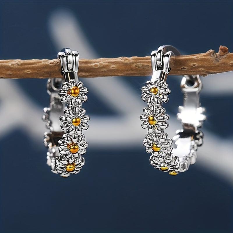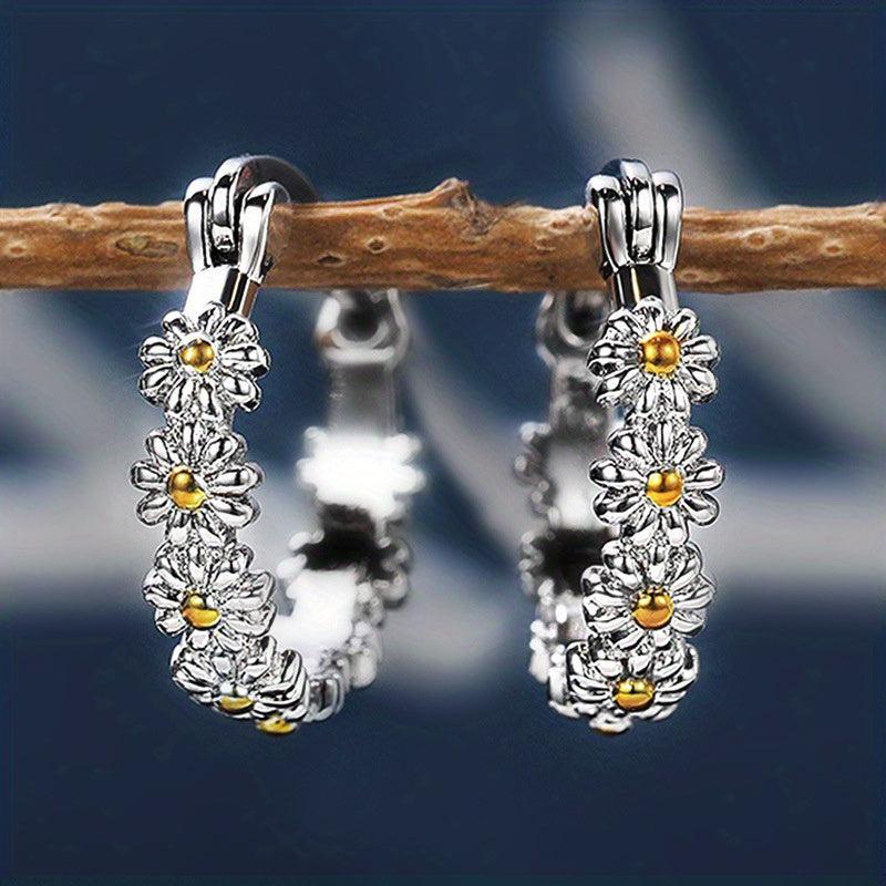 Beautiful daisy design hoop earrings made of copper with silver plating. A perfect gift for women who love stylish accessories.