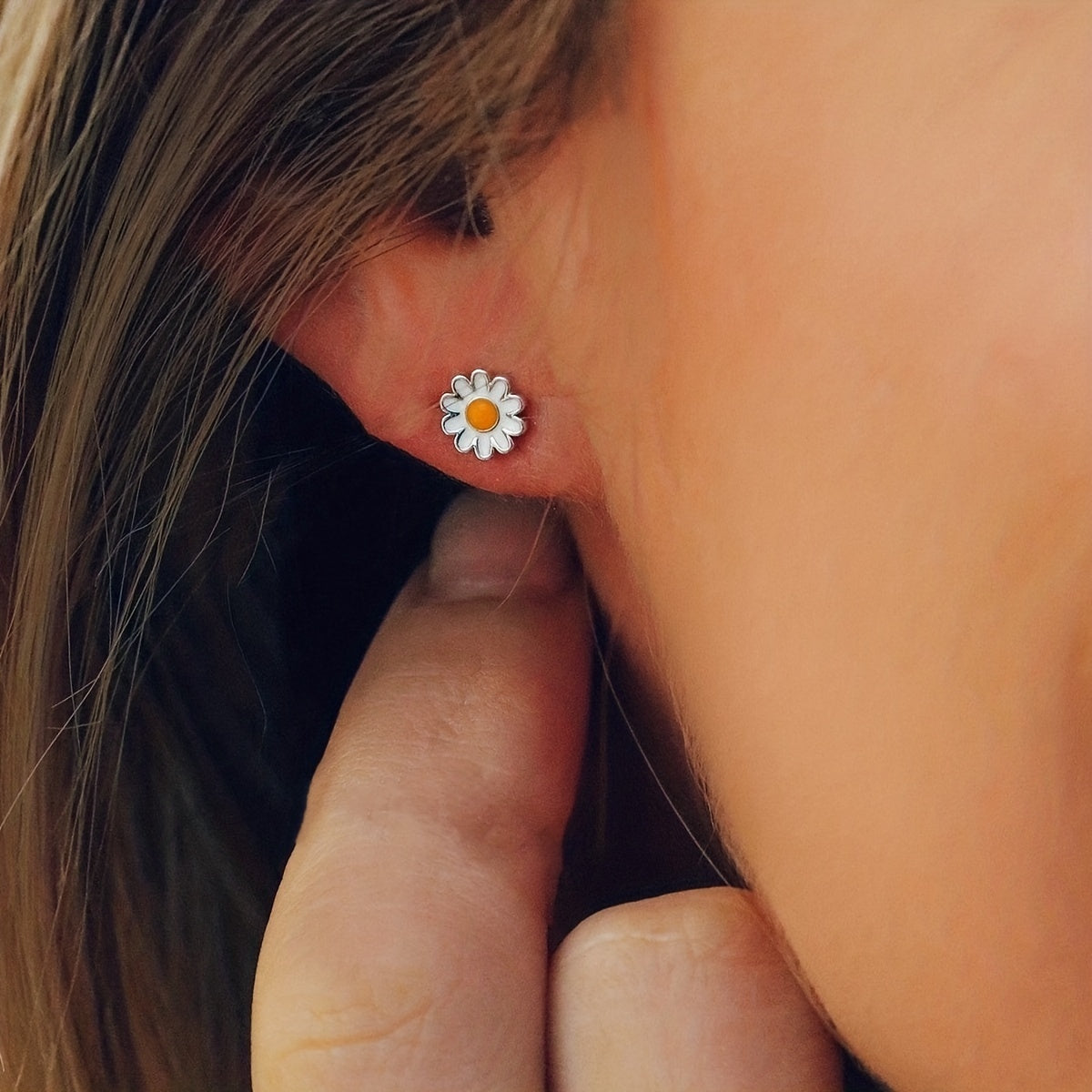 Add a touch of elegance to your outfit with these delicate daisy enamel stud earrings. Perfect as a gift for a special someone or as a treat for yourself.