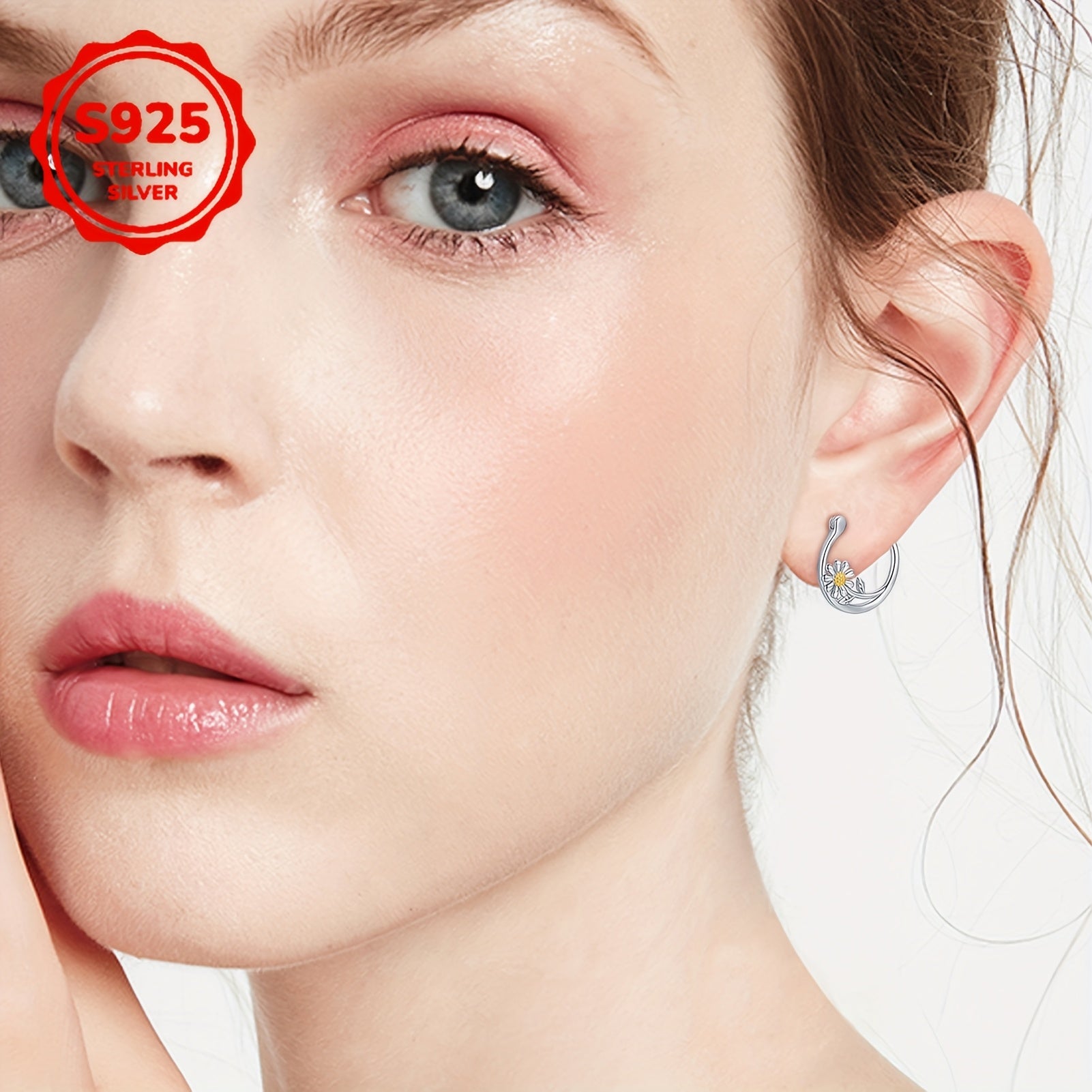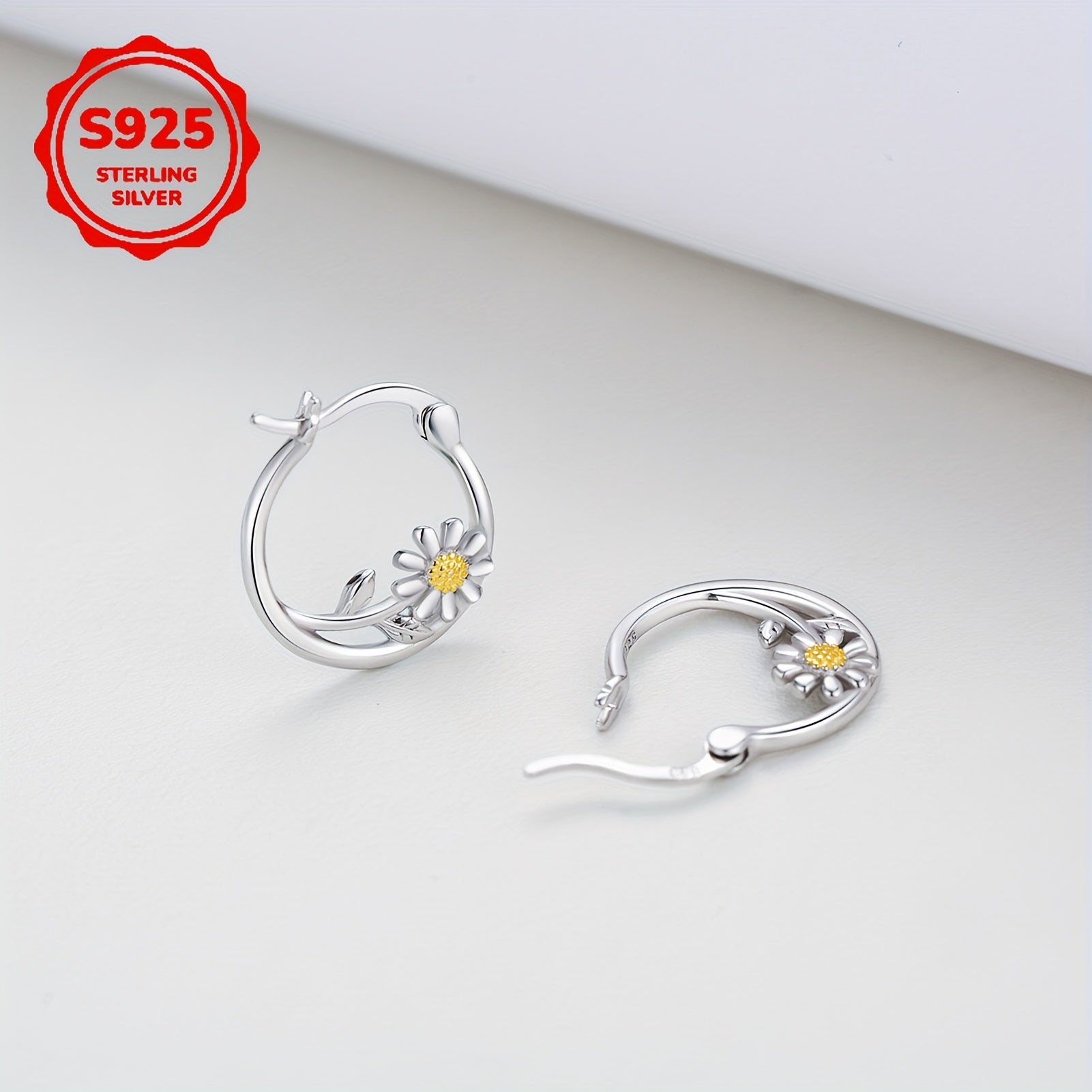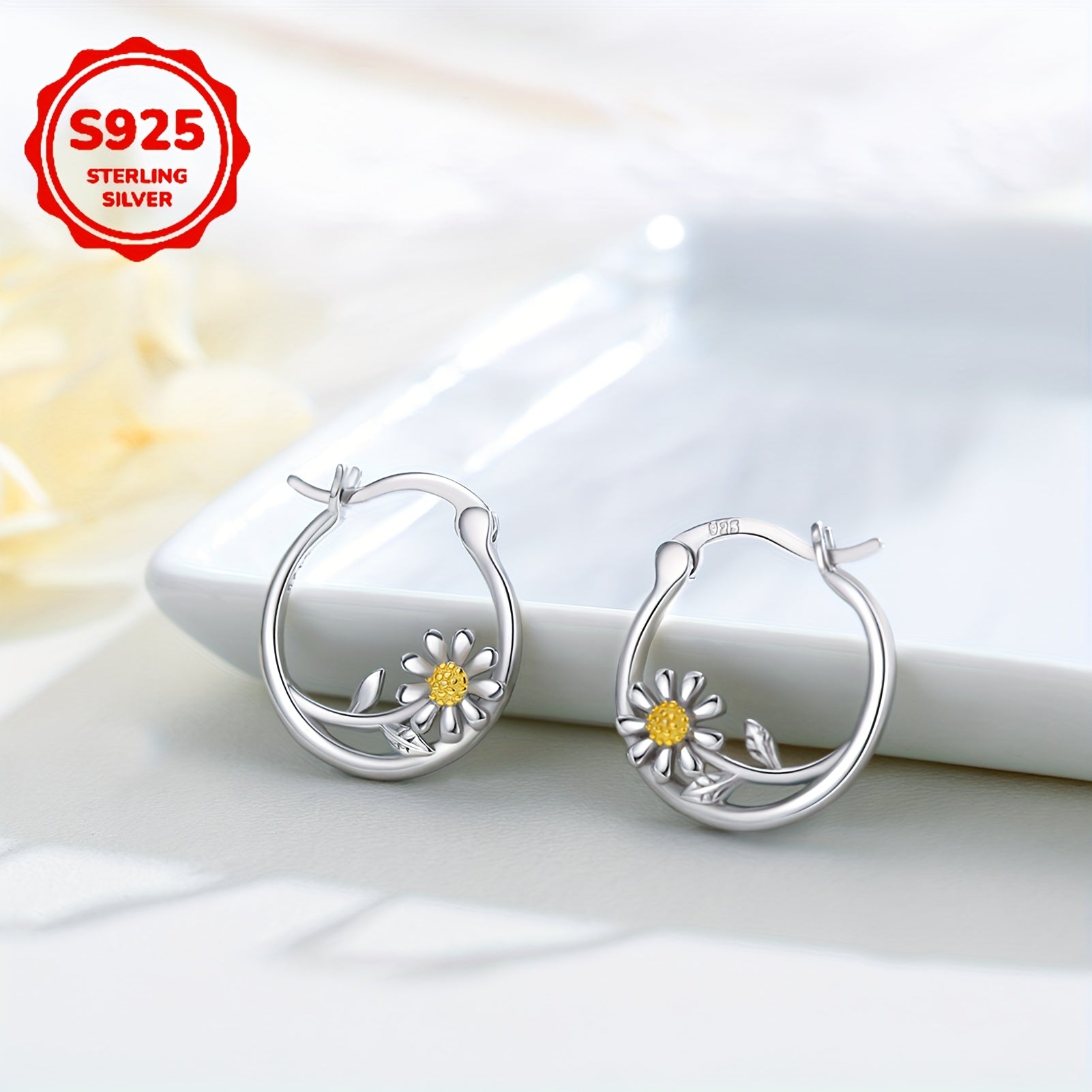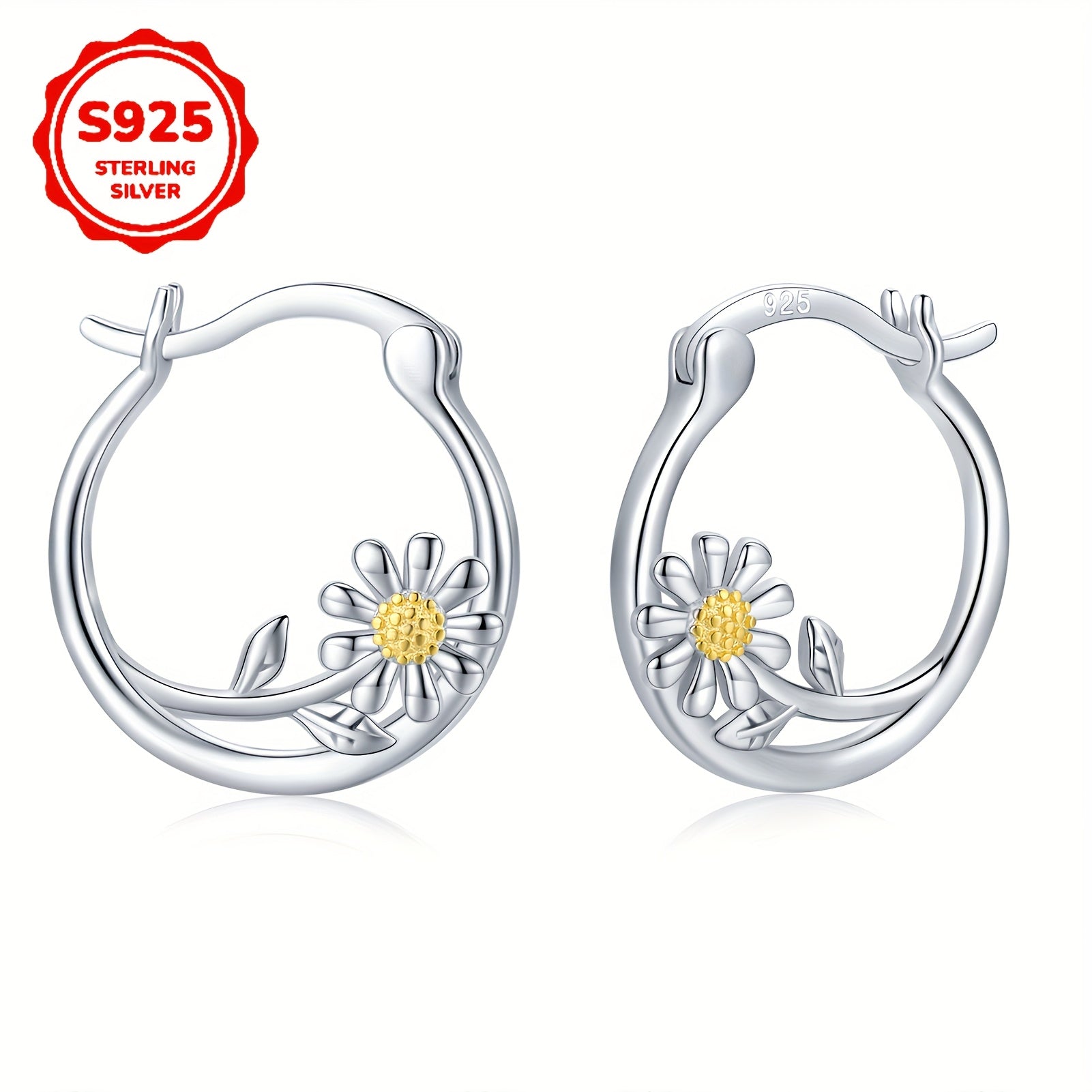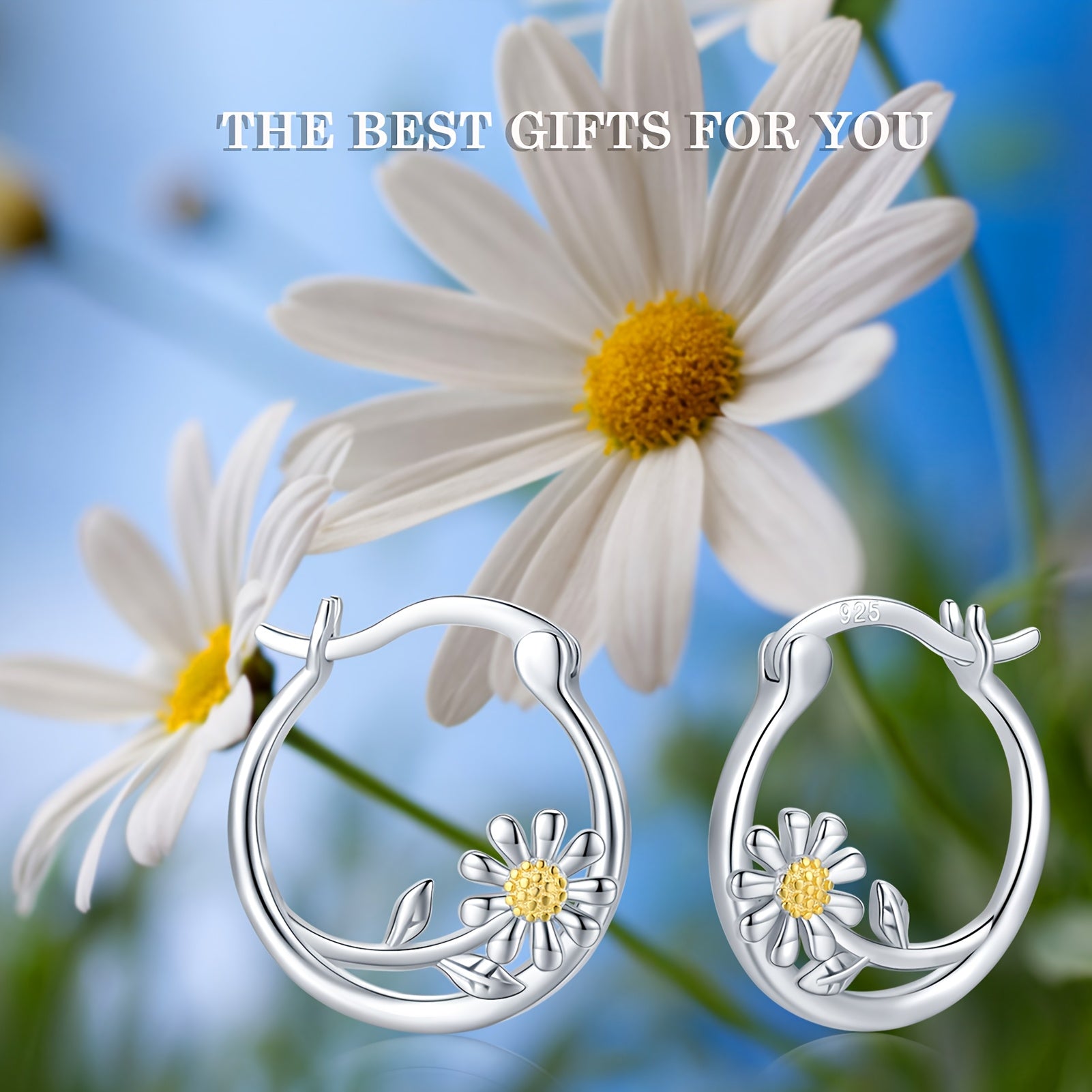 These daisy hoop earrings are made of hypoallergenic 925 sterling silver. They are fashionable and perfect for everyday wear or special occasions. Great gift for birthdays and holidays.