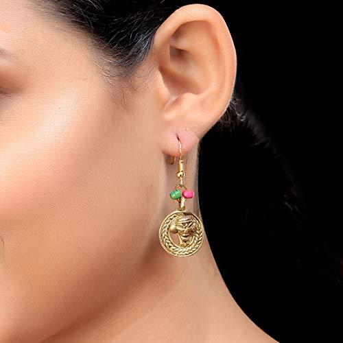 These beautiful dangler earrings are perfect for adding a touch of elegance to any outfit. Made from gold plated metal, they feature a sleek design that will complement both casual and formal looks.