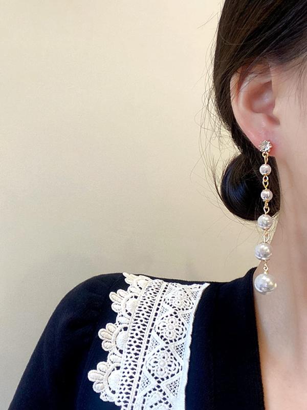 Beautiful dangler earrings featuring pearl-plated long chains, perfect for celebrating birthdays or anniversaries with your wife.