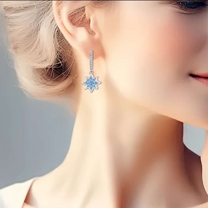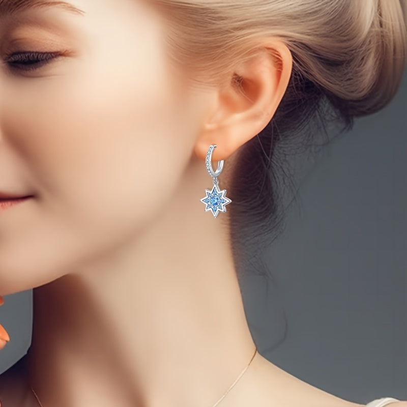 Add a touch of celestial elegance to your look with these star hoop earrings. Crafted from 925 sterling silver and adorned with synthetic zirconia, they are perfect for any occasion.