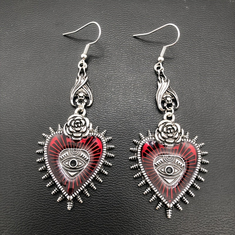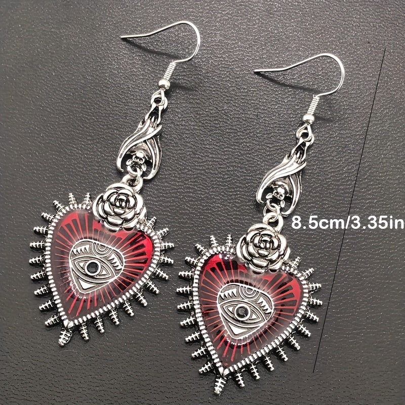 Add a touch of dark Gothic punk style to your look with these heart-shaped rose hook earrings, perfect for Halloween or everyday wear.