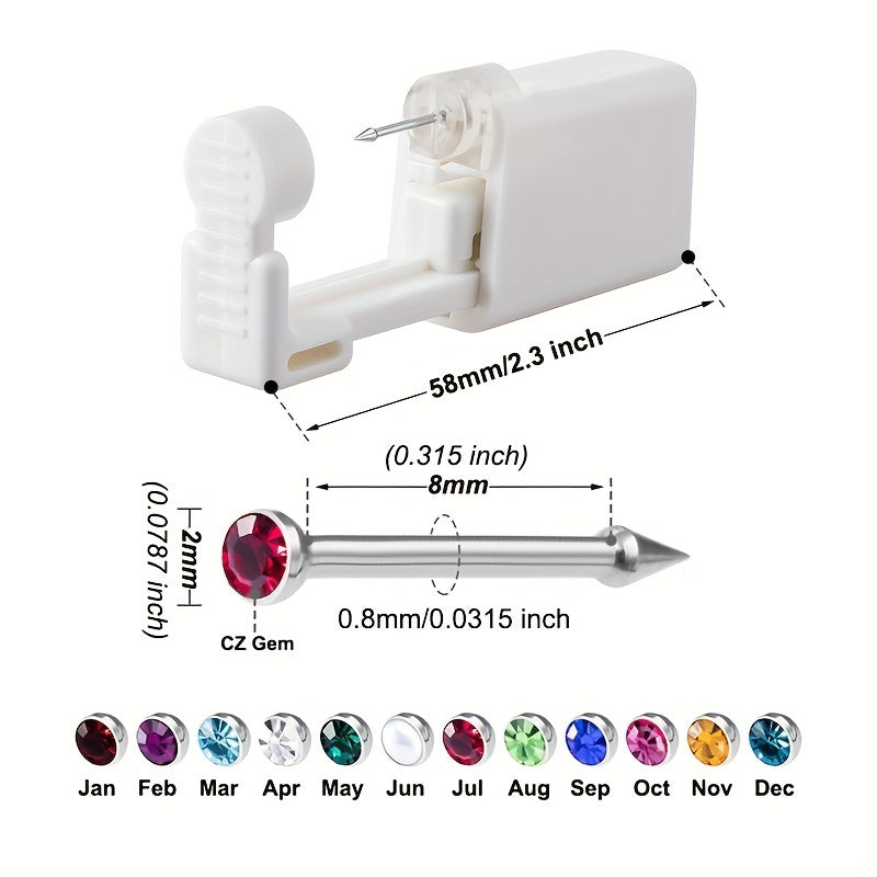 This disposable piercing unit is safe and sterile, perfect for piercing birthstone CZ nose studs. The kit includes a piercing gun and earring stud body jewelry.