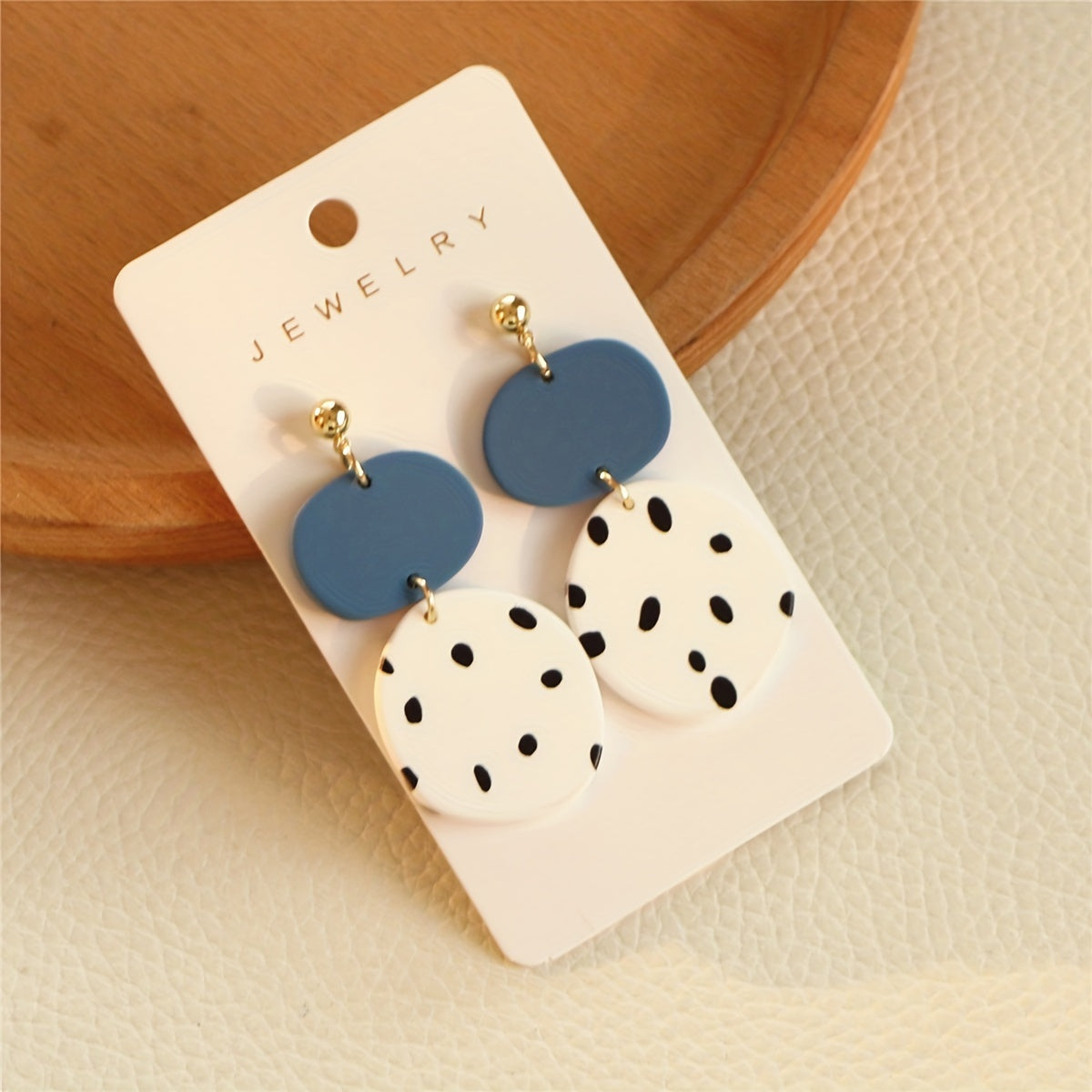 Elevate your style with these sexy dot pattern dangle earrings made of acrylic and polymer clay. Perfect gift for a fashion-forward female.