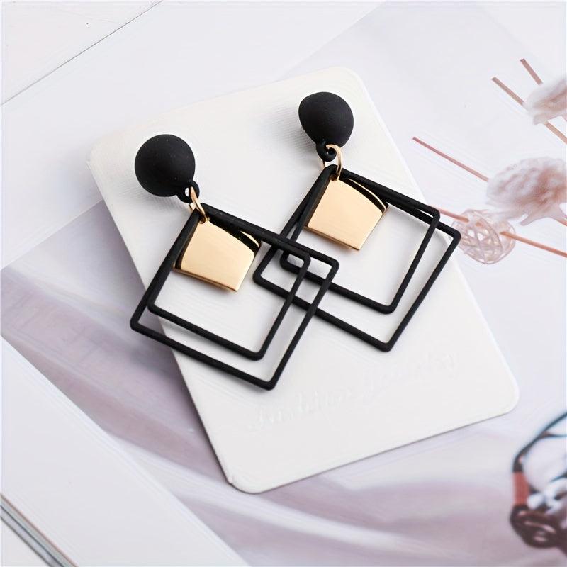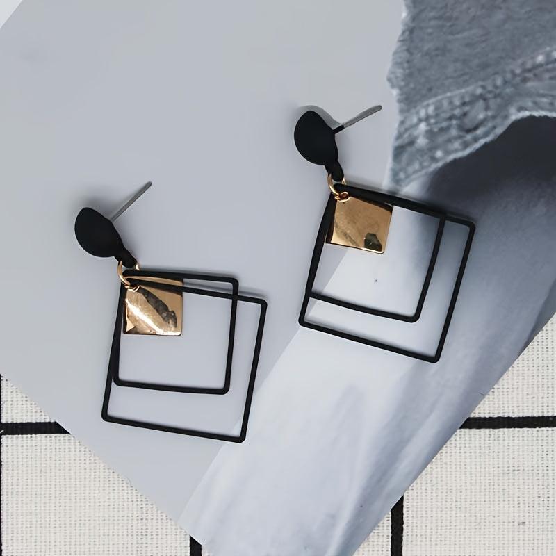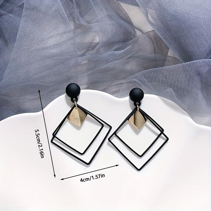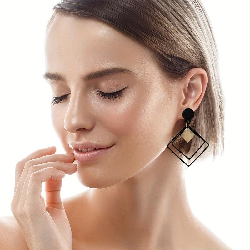 These stylish dangle earrings feature a double hollow rhombus shape design, perfect for daily casual wear.
