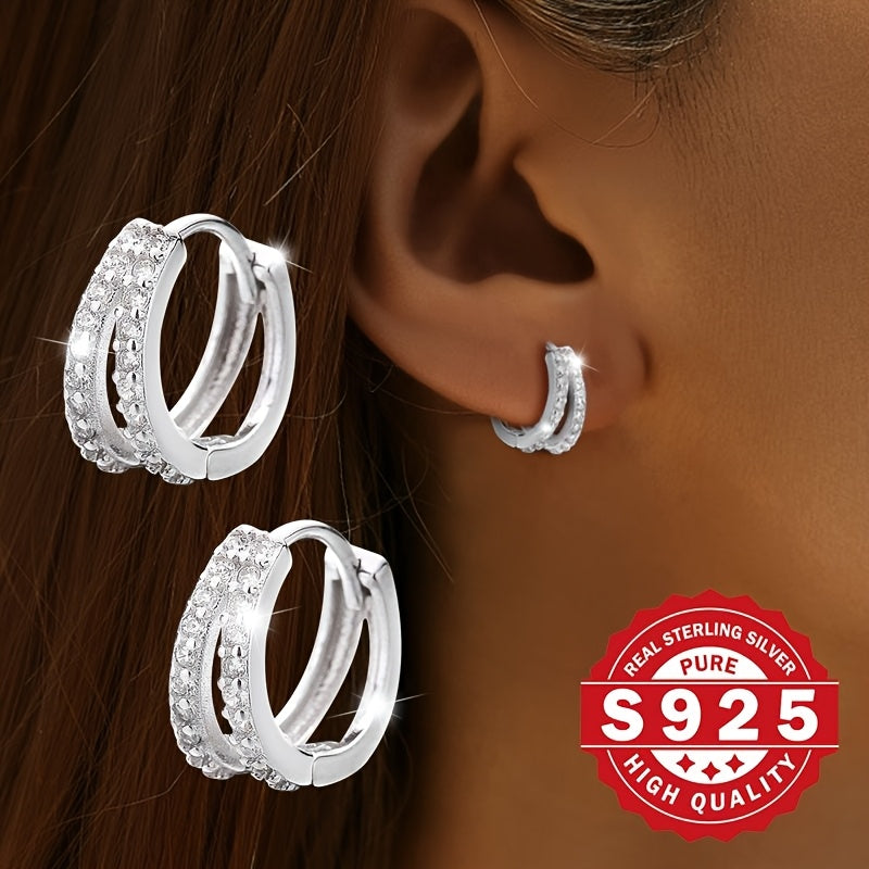 Add a touch of sparkle with these double line cubic zirconia hoop earrings. Made with S925 sterling silver and 18K gold plating, these earrings are hypoallergenic and lightweight. Perfect for daily wear and music-inspired looks.