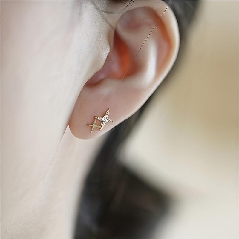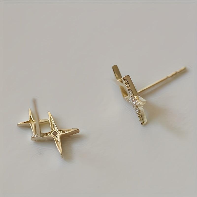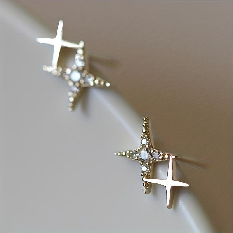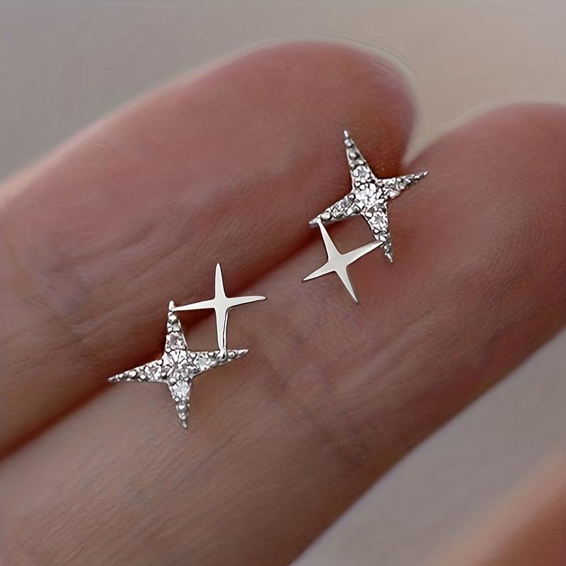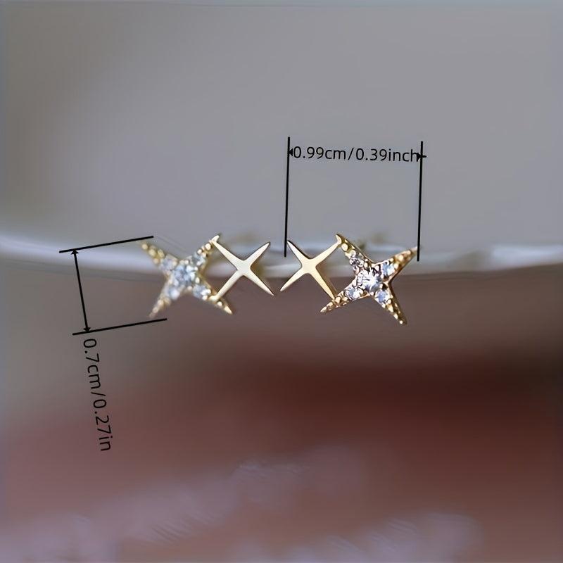 Add a touch of celestial charm to your look with these double star stud earrings featuring synthetic zirconia in April birthstone color. Made of copper with nickel plating, these earrings are perfect for daily wear or special occasions.