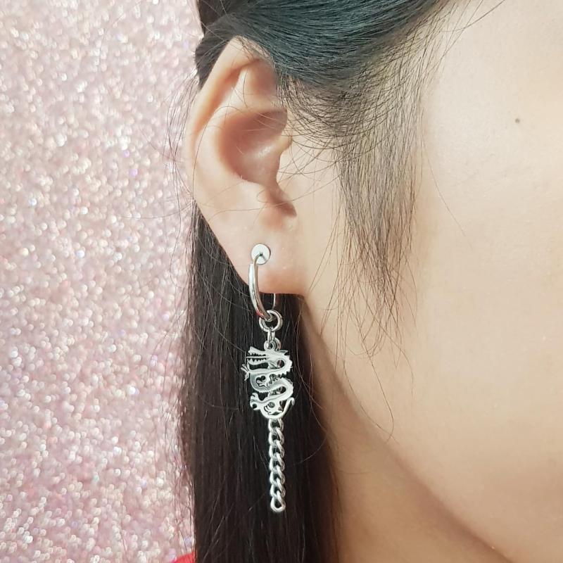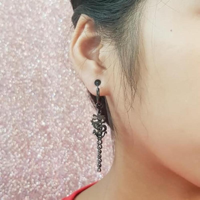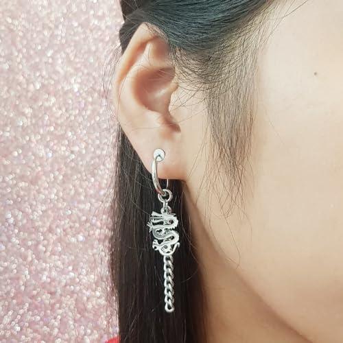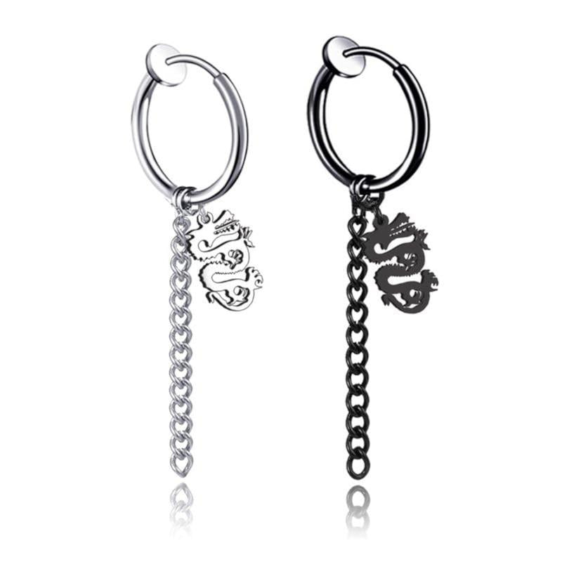 Stay stylish with these no-tarnish, no-rusting, and no-piercing stainless steel dragon charm clip-on earrings. Perfect for any outfit.