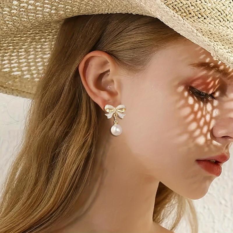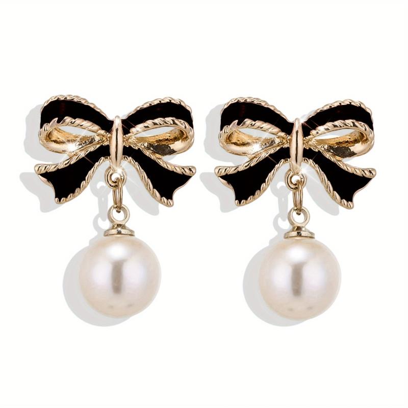 Elevate your style with this set of versatile drop shaped bow earrings that are perfect for every season. The set includes delicate stud earrings and stylish hoop earrings.