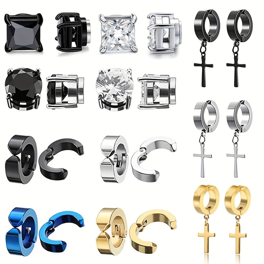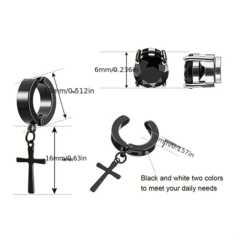 This set includes 1 pair of earrings with cross, round, hexagonal, and star pendant designs. The ear clasps are perfect for securely holding the earrings in place.
