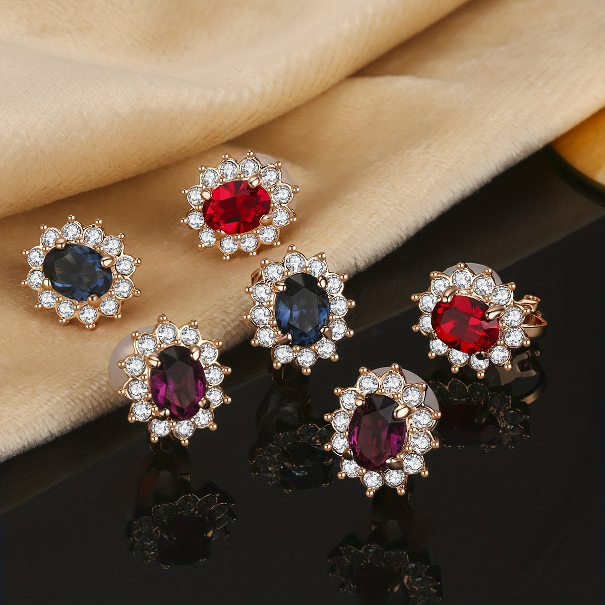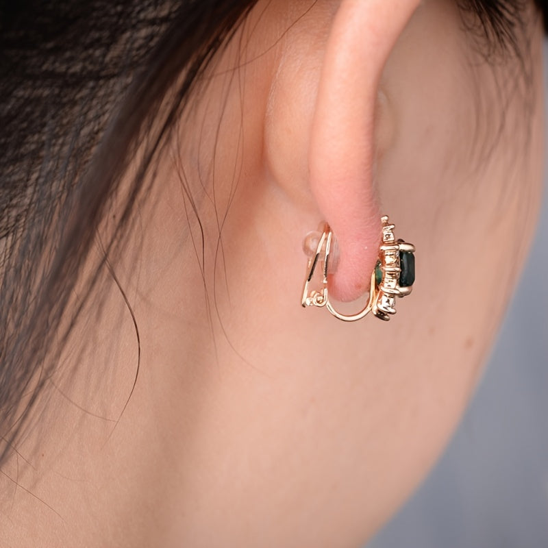 Enhance your style with these stunning clip-on earrings featuring faux gemstones. Perfect for women who want to add a touch of elegance to their outfit.