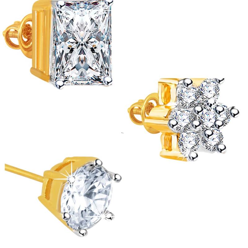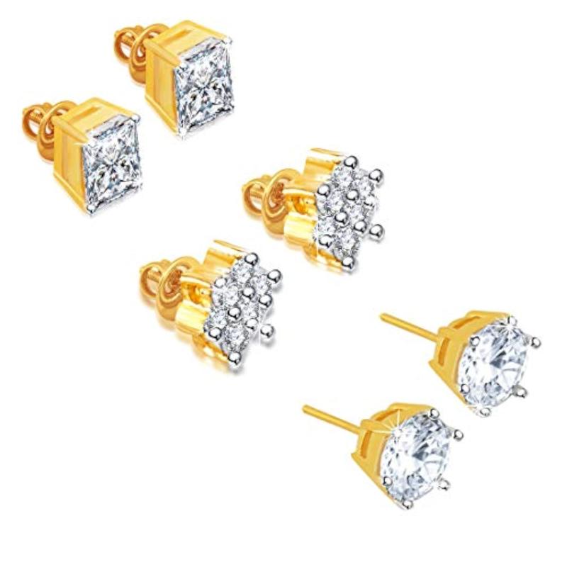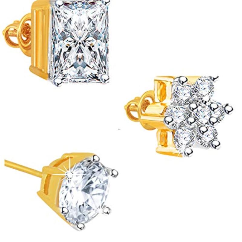 Adorn yourself with this stunning combo set of crystal stud earrings plated with 18 carat gold for a touch of luxury.