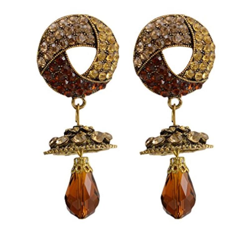 Add a touch of glamour to your outfit with these stunning gold hoop earrings featuring sparkling crystal accents.