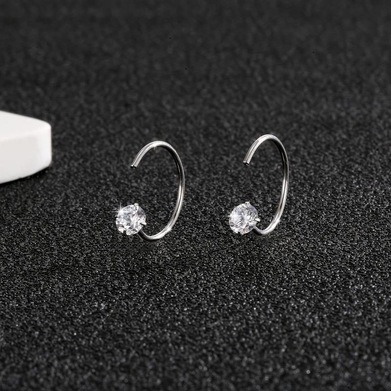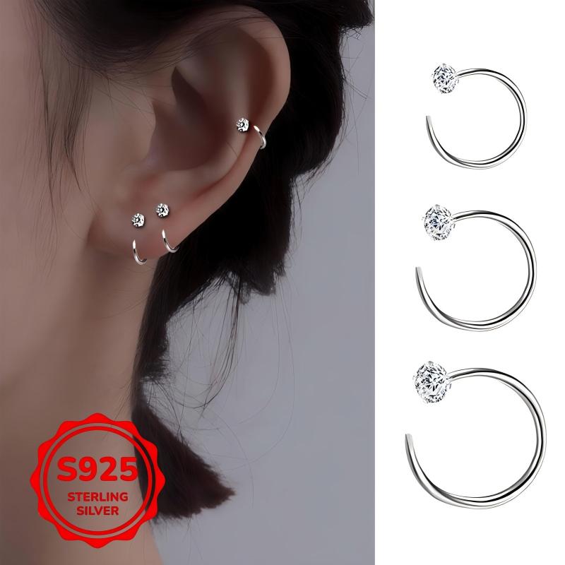 These delicate S925 silver earrings feature zirconia stones held by four claws, adding a touch of elegance to any outfit.