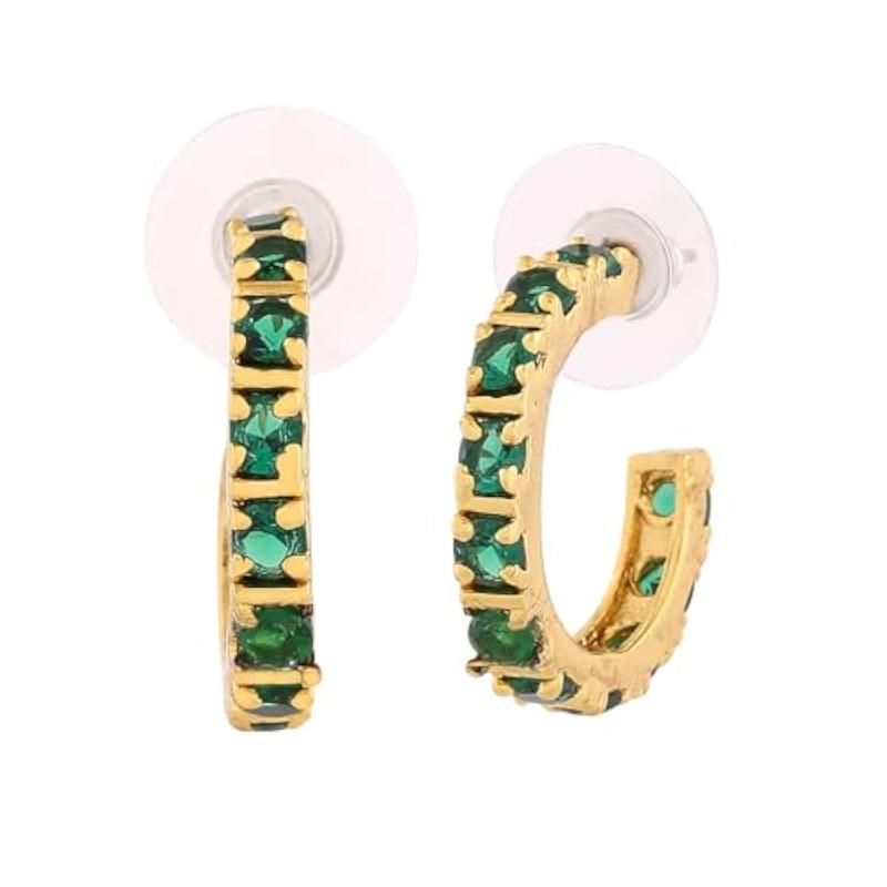 Surprise your girlfriend or wife with these stunning 24Kt gold plated hoop earrings featuring sparkling emerald CZ stones.