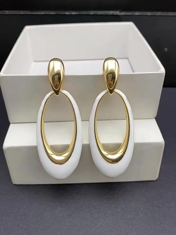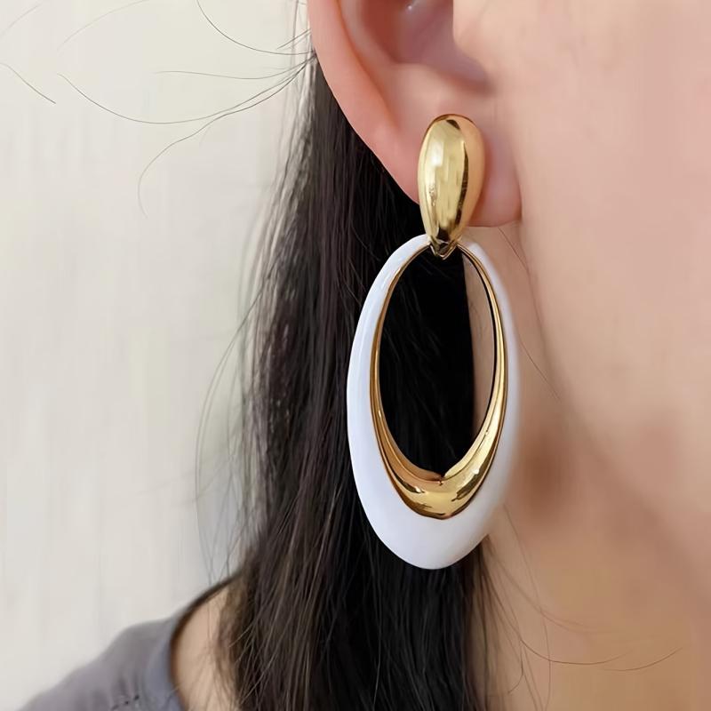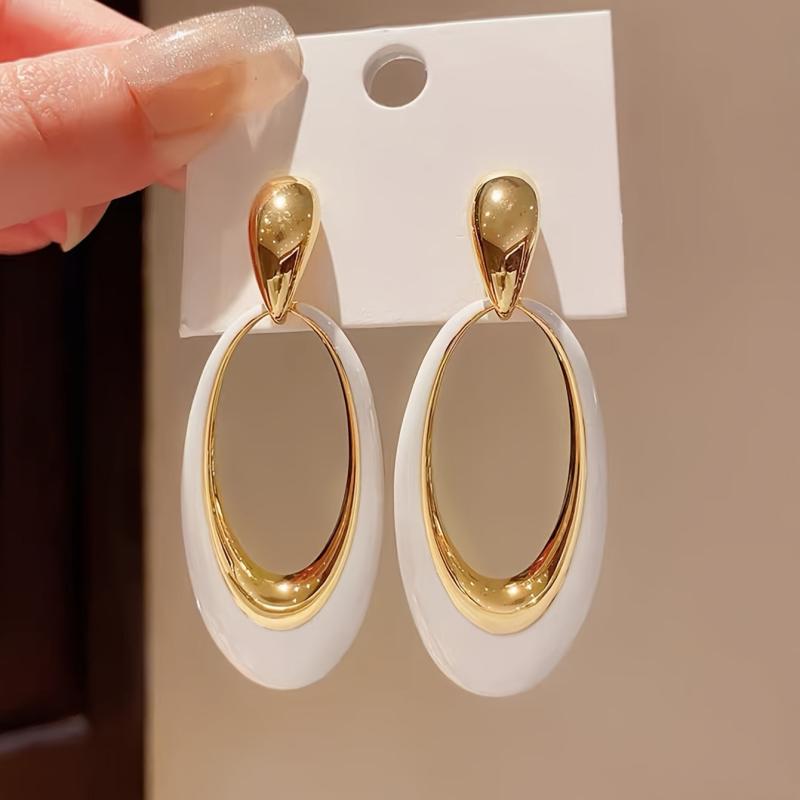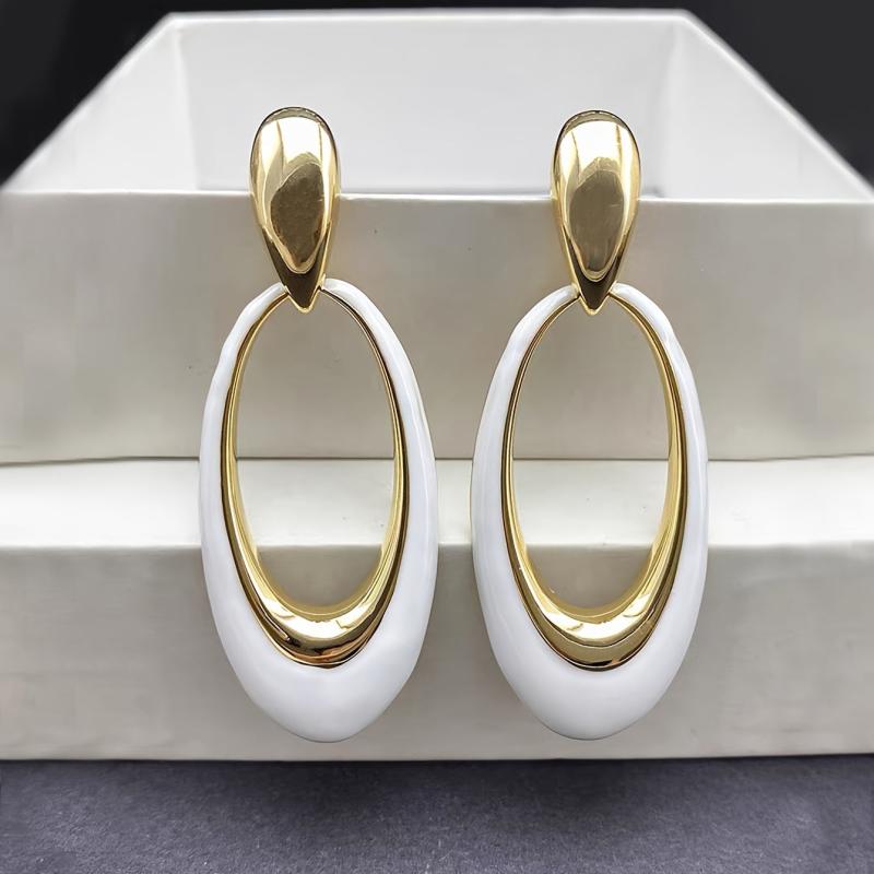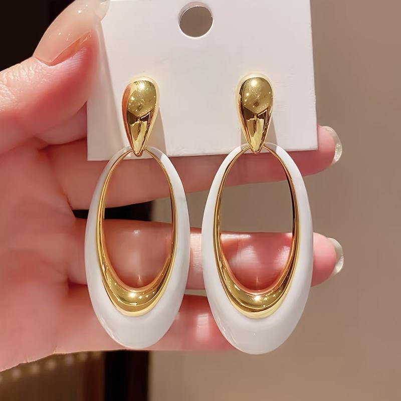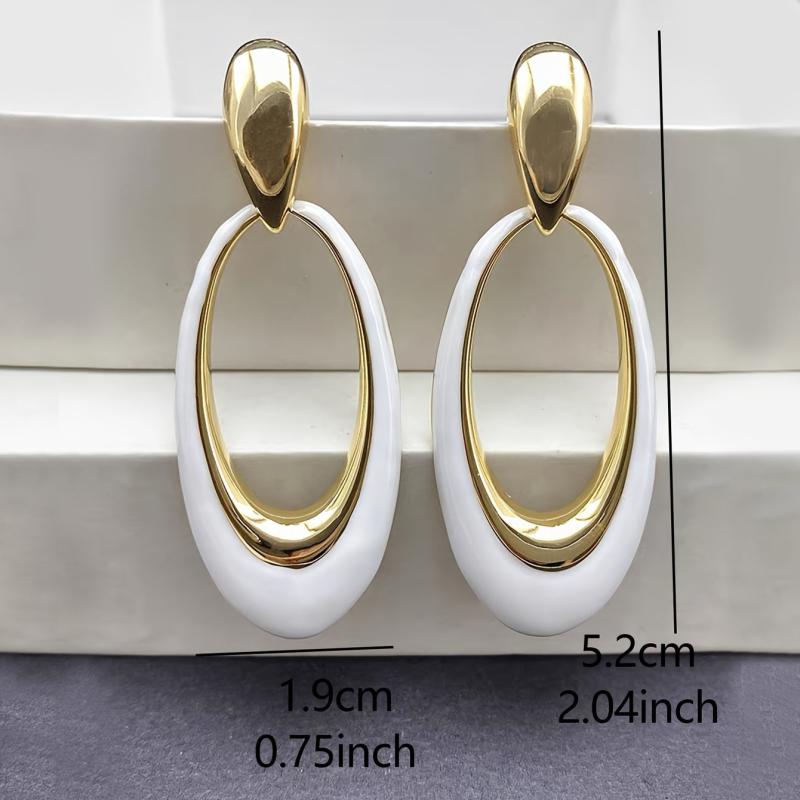 Elegant enamel dangle earrings with hollow oval shaped design. Made of zinc alloy, perfect for everyday wear.