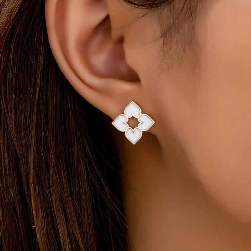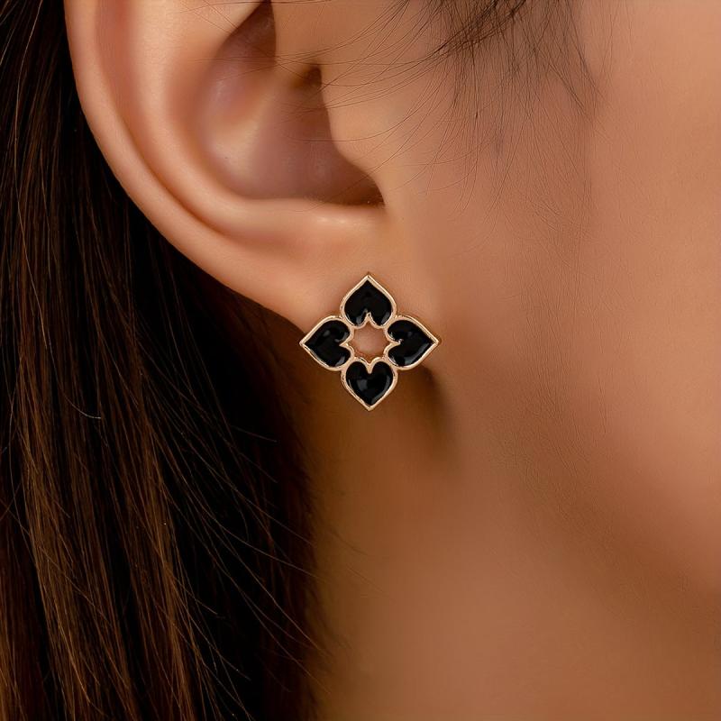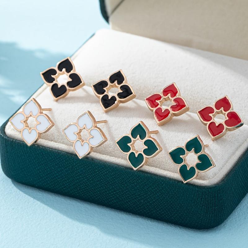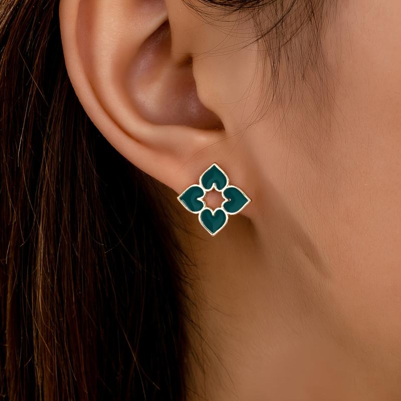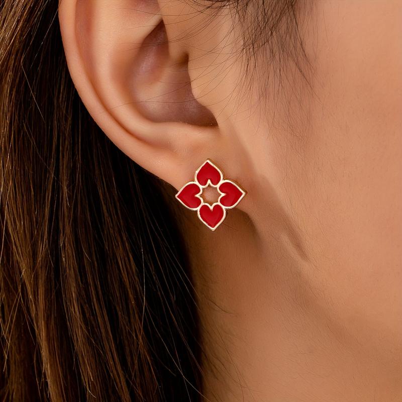 These heart-shaped enamel stud earrings are a versatile accessory that adds charm to both party and casual outfits. They feature a lovely combination of red and green enamel with elegant golden accents.