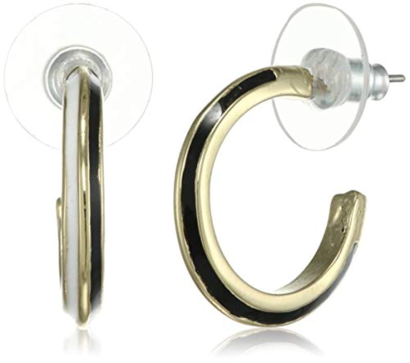 Add a pop of color and elegance to your look with these hoop earrings featuring a 24 Kt gold plated finish and enamel detailing.