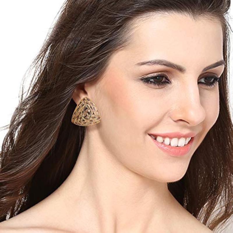 These elegant earrings are plated with enamel featuring a triangle shape design, making them a perfect accessory for girls and women.