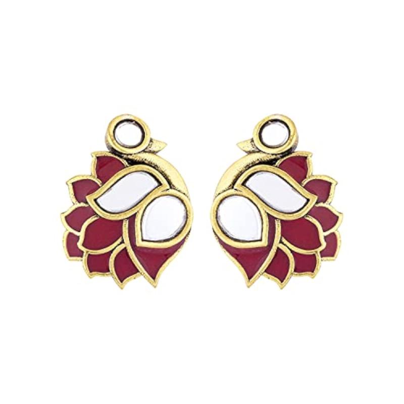 Beautifully designed traditional style earrings featuring oxidised brass and enameled bird motif.