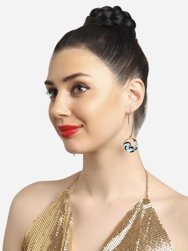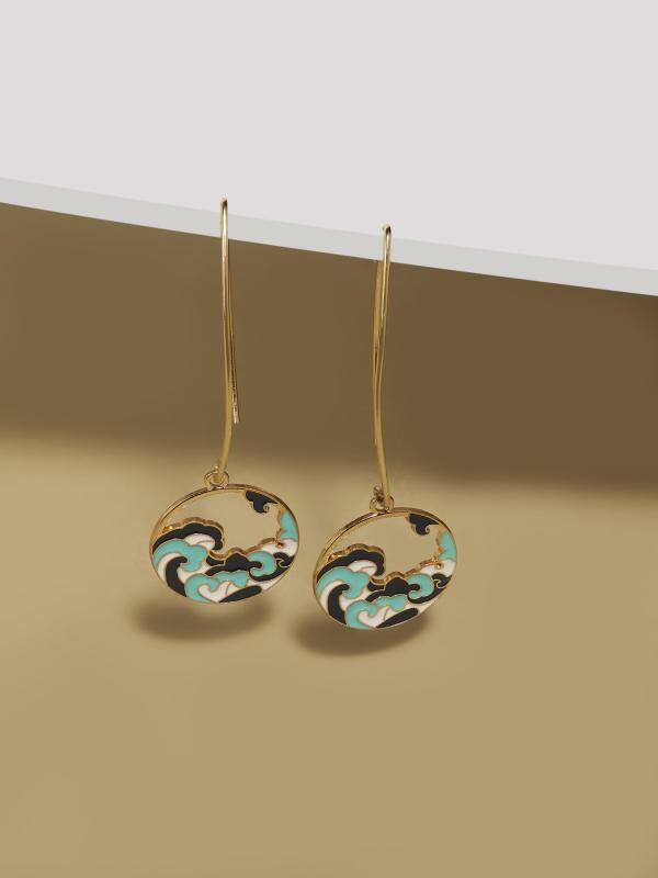 These contemporary drop earrings feature a beautiful enamelled sea wave design, perfect for adding a touch of unique style to any outfit.