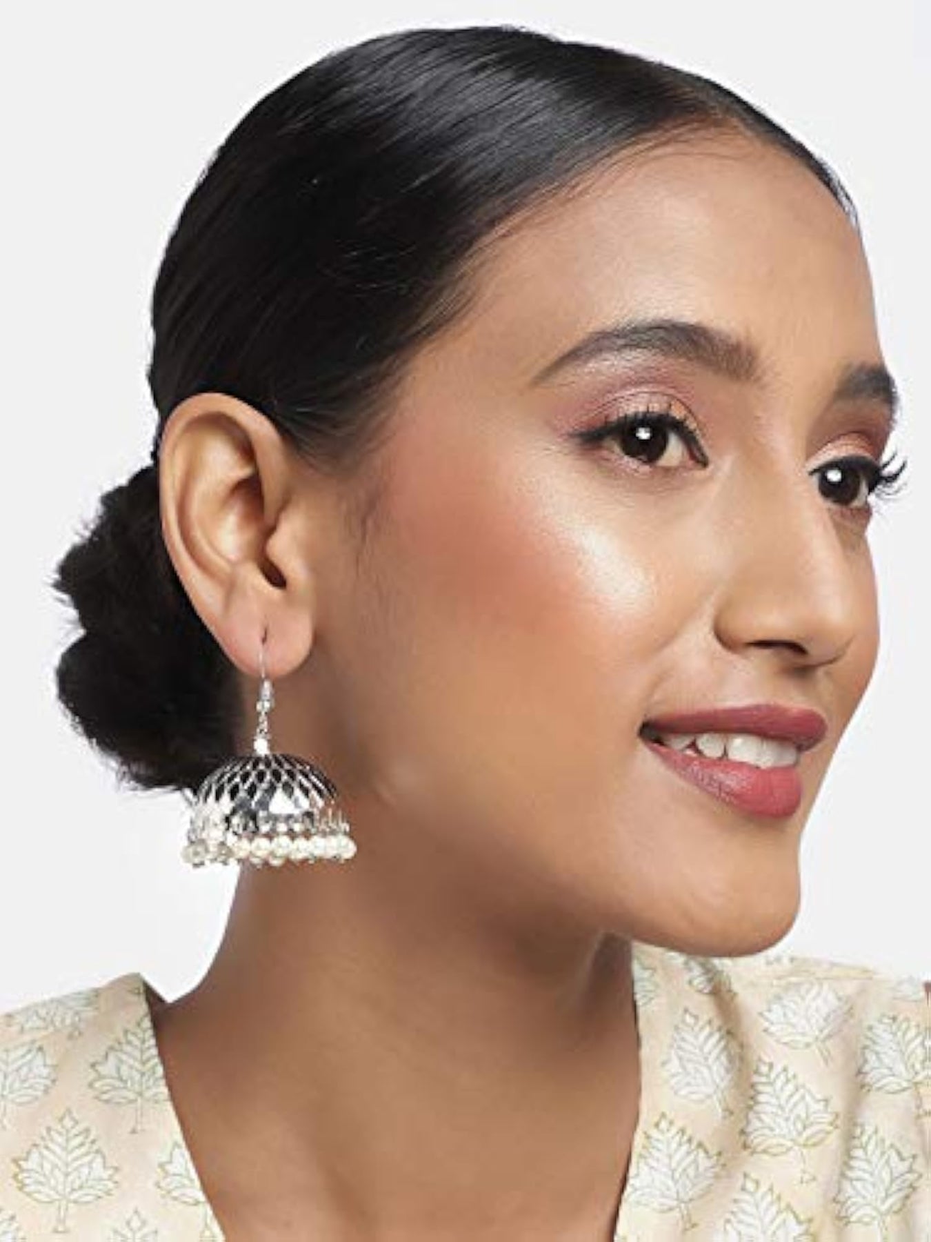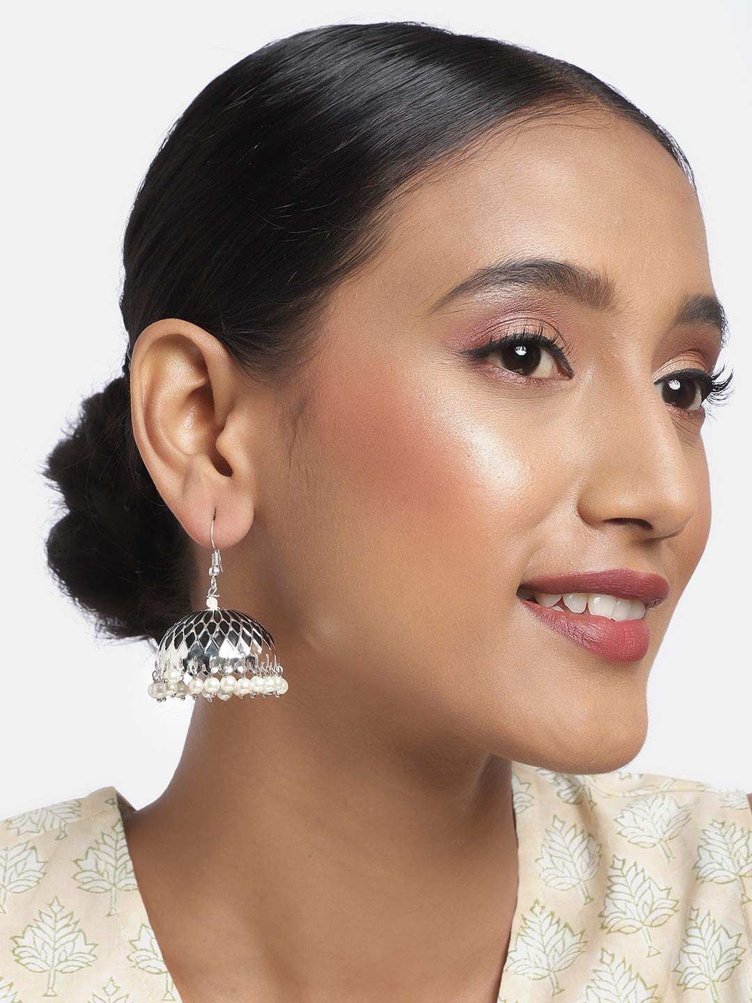 Add a touch of elegance to your look with these beautiful ethnic jhumki earrings. Suitable for various occasions and perfect for traditional wear.