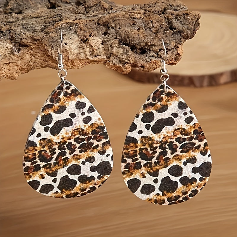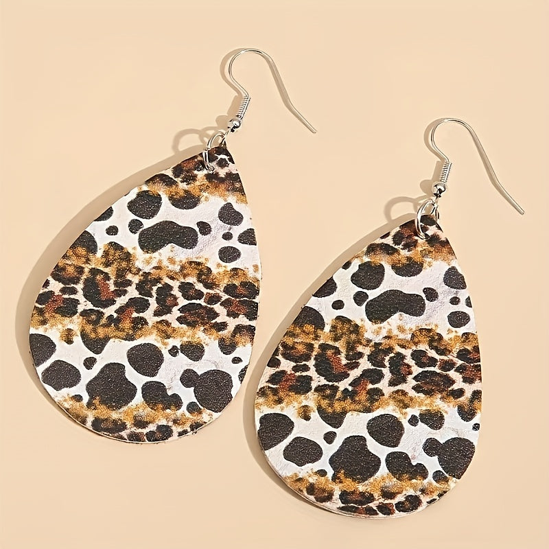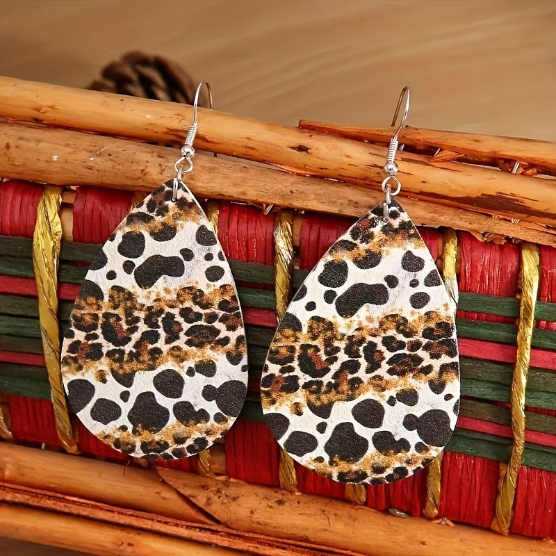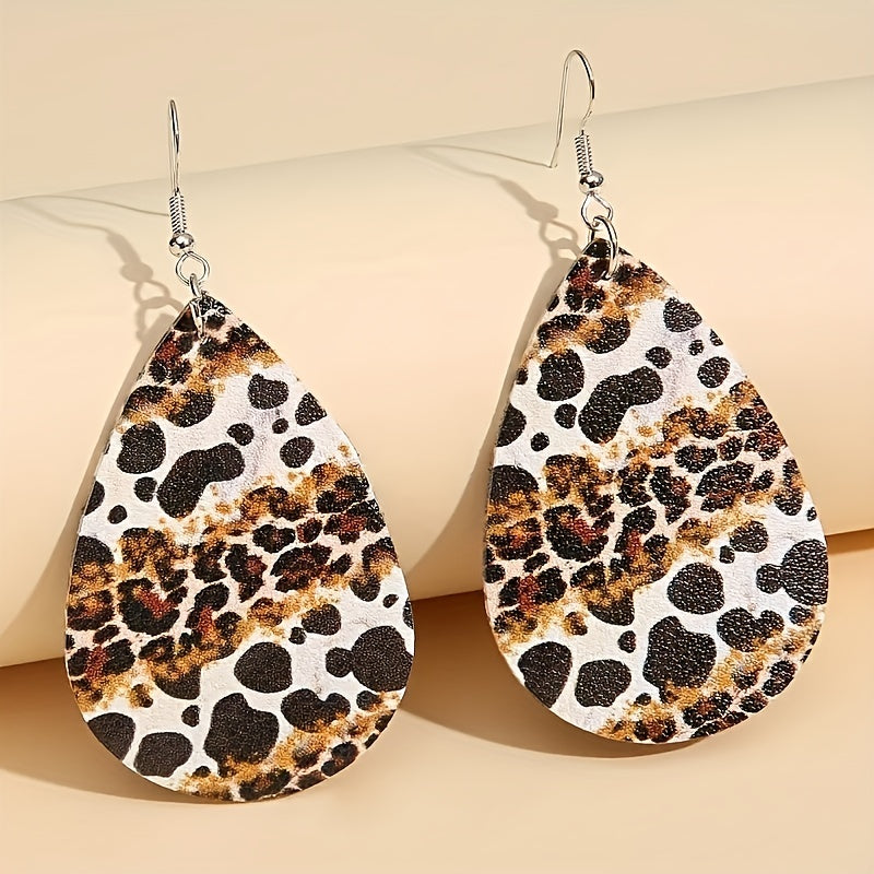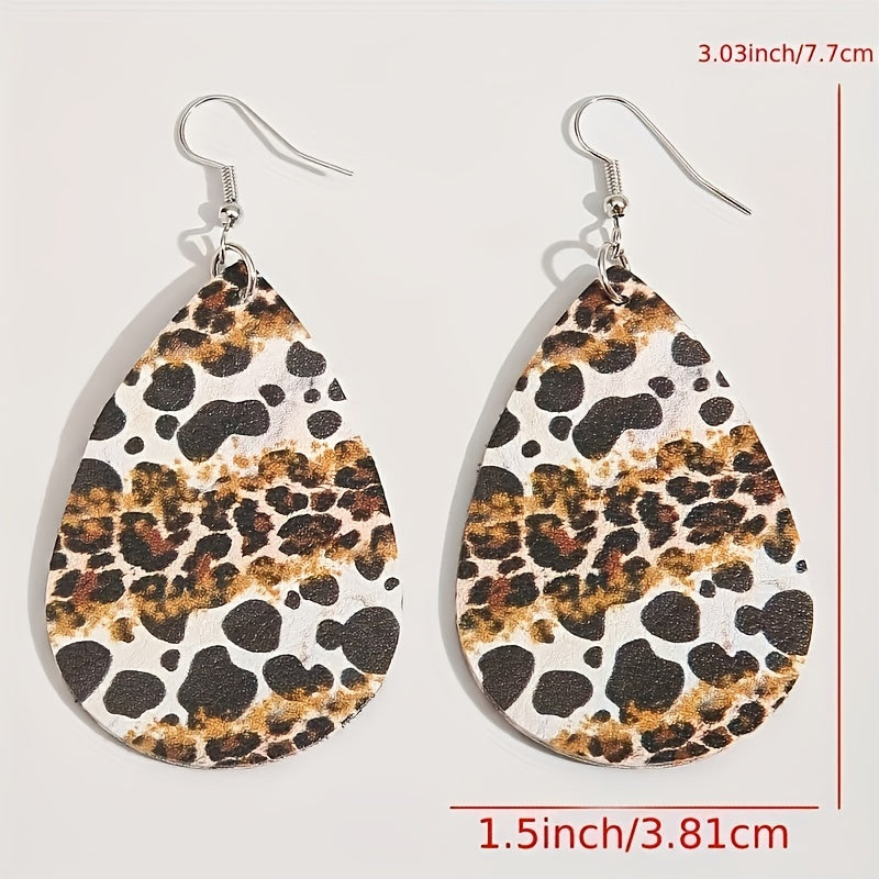 Embrace retro style with these bohemian drop earrings featuring a leopard print design. Made of high-quality PU leather, these ethnic accessories add a unique touch to any outfit.