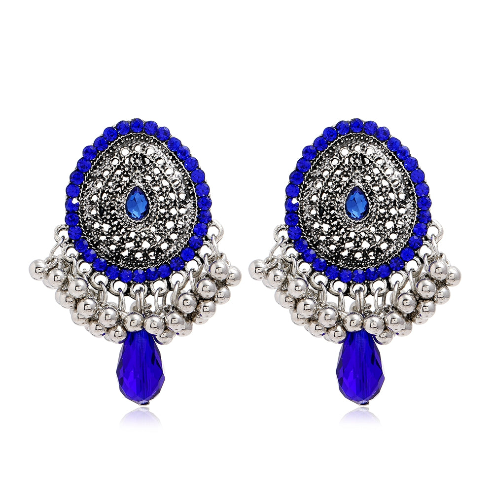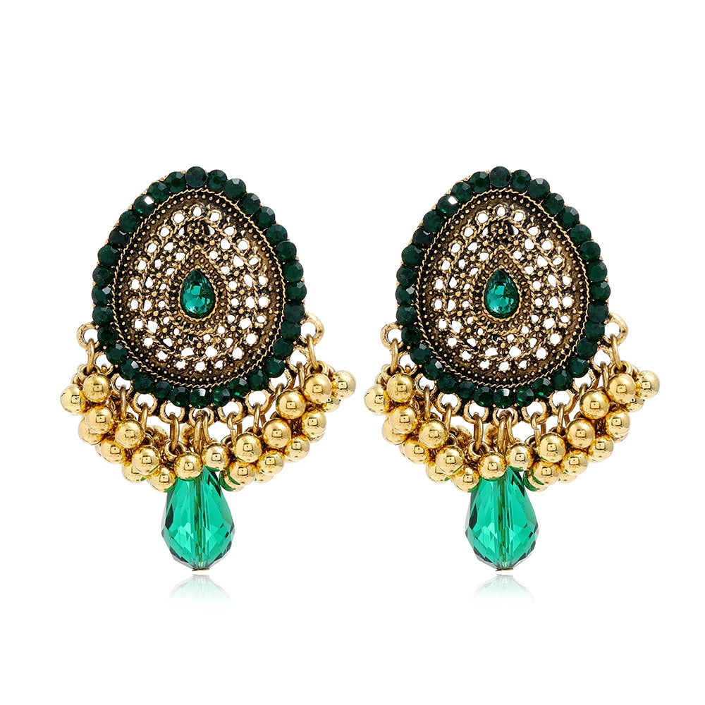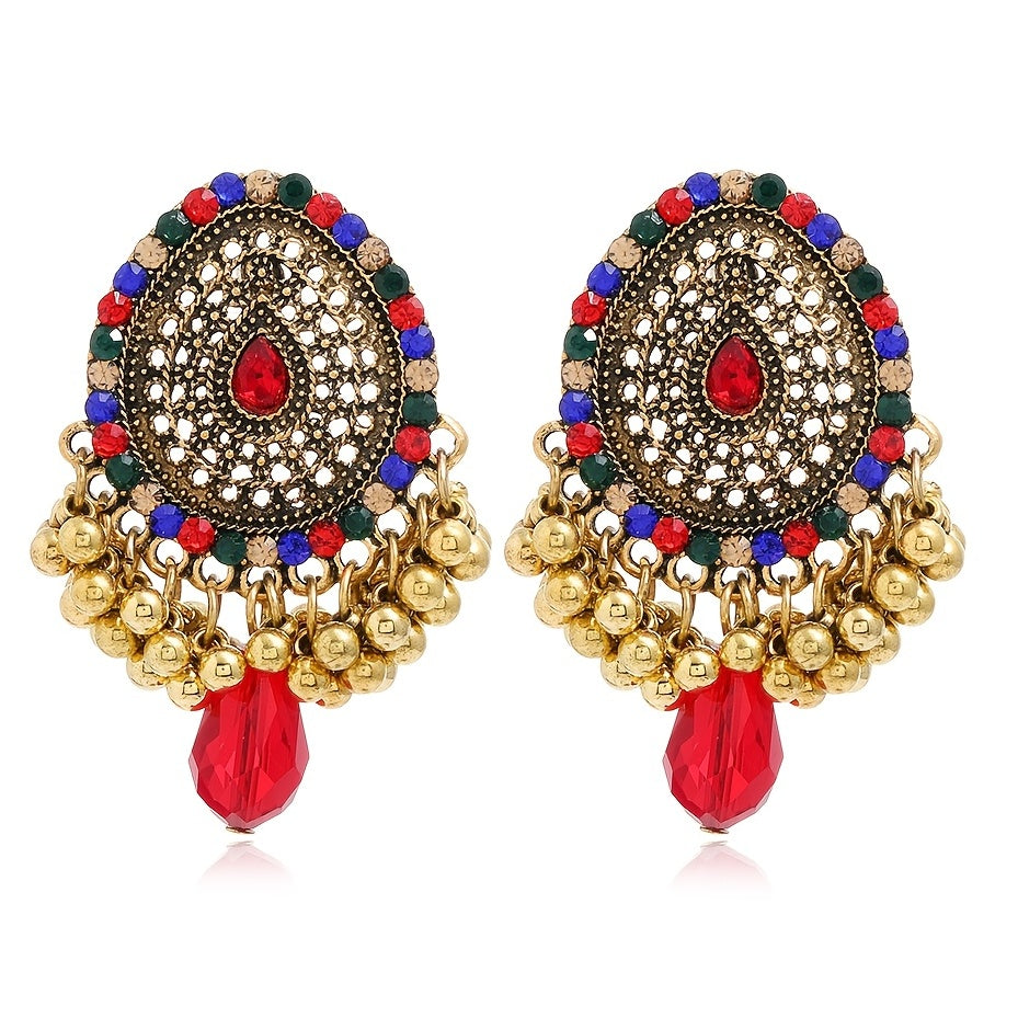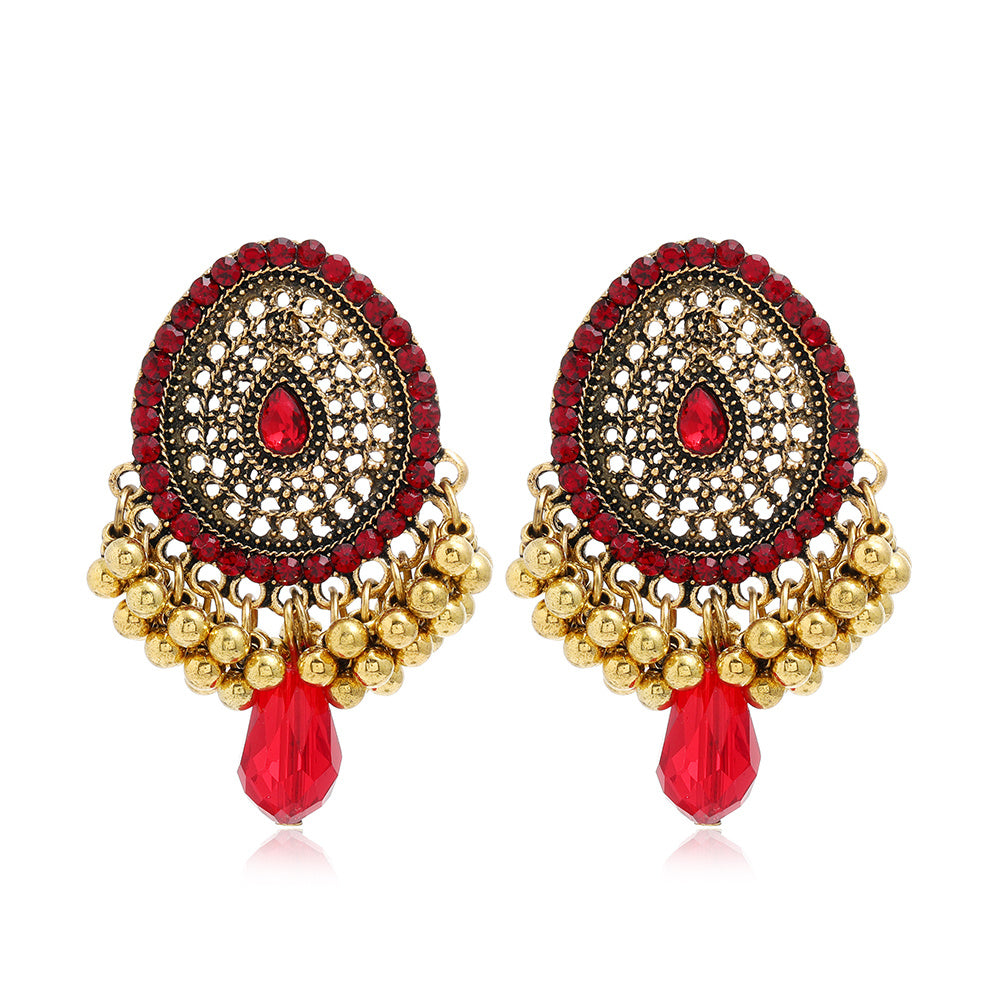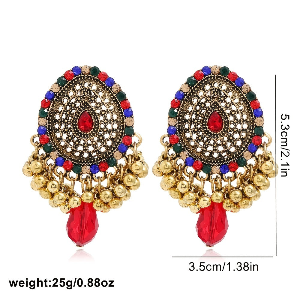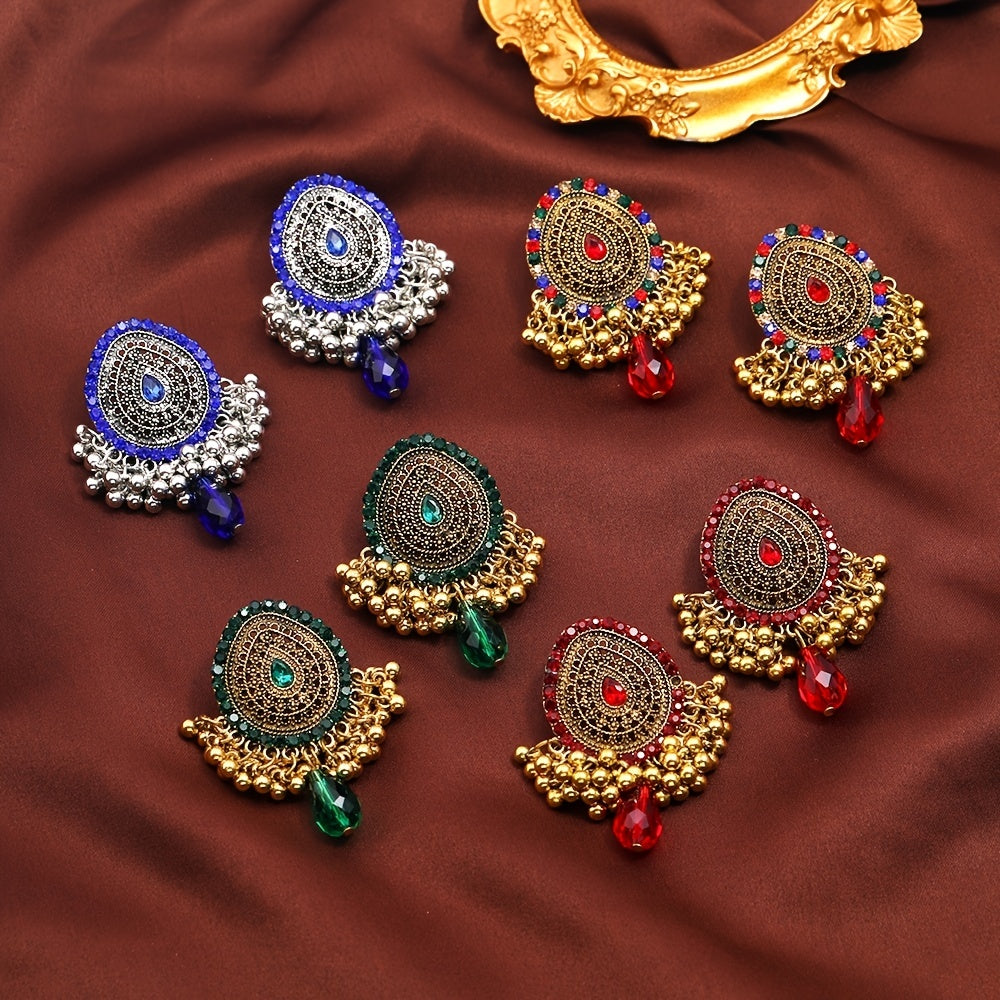 These retro Indian earrings feature a hollow design with inlaid rhinestone beads and stylish tassels. Perfect for adding an ethnic touch to your outfit.