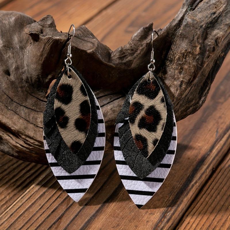 These cross border earrings are crafted from PU leather, featuring a unique leaf shape design. They are a stylish accessory that can be worn for various occasions.