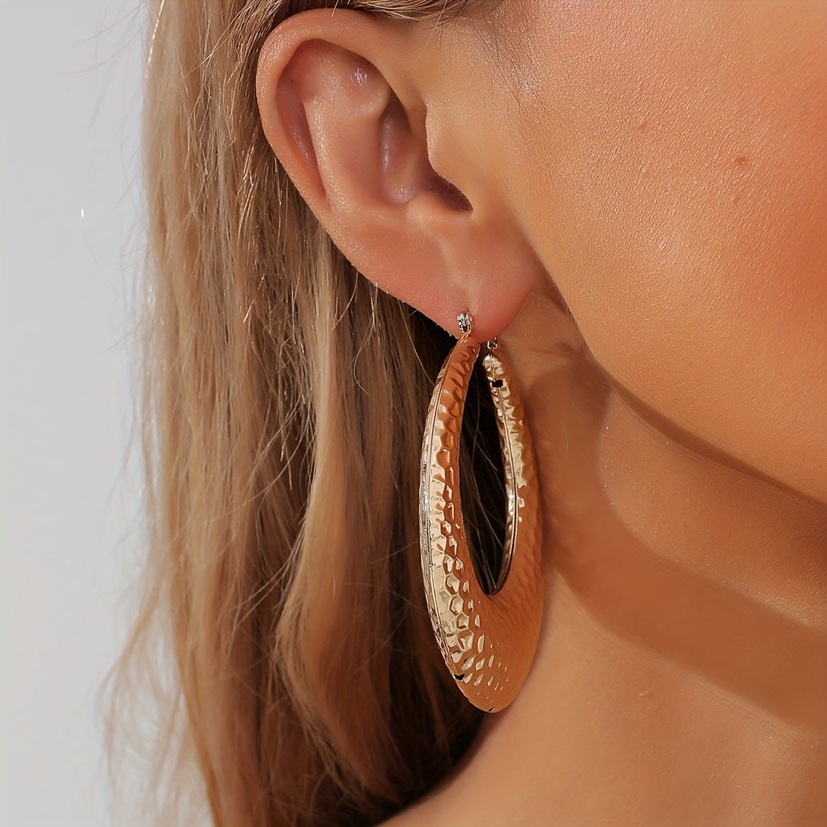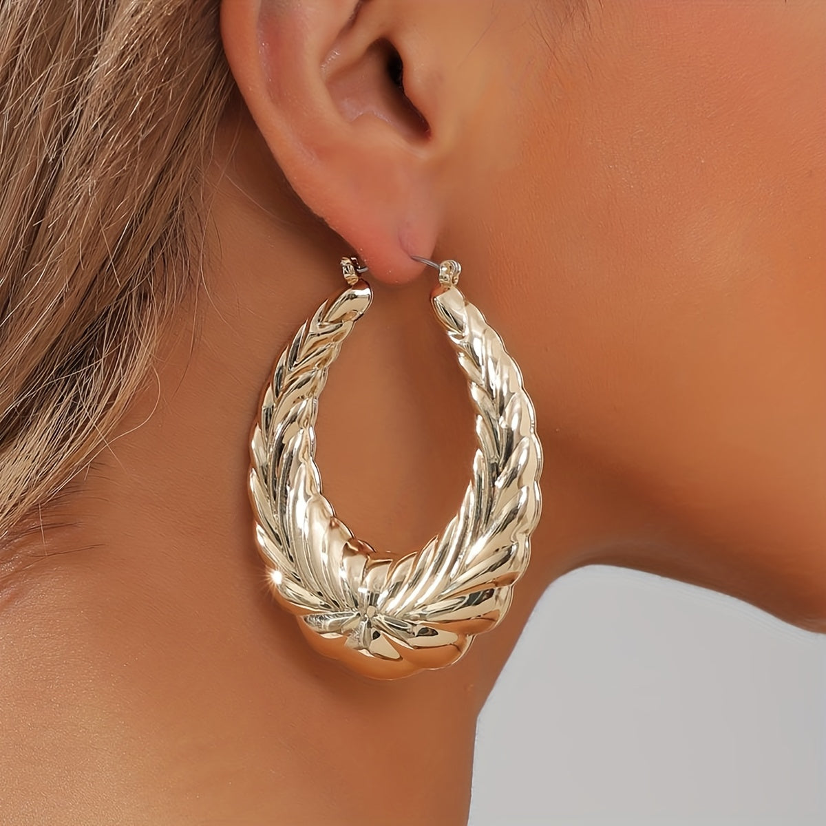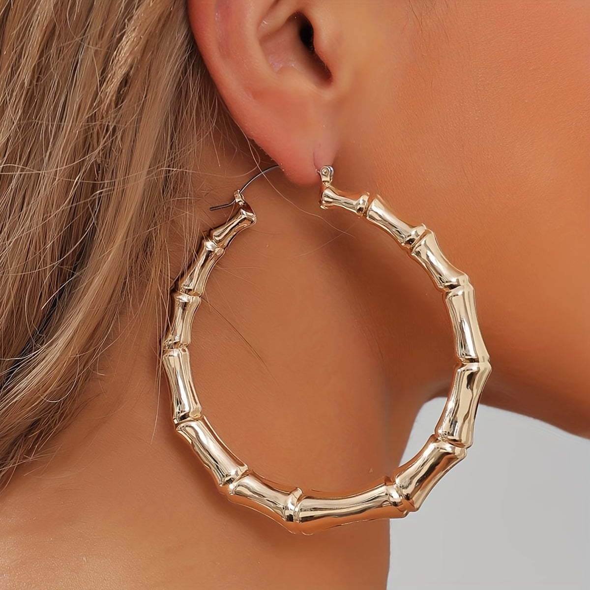 This stunning pair of hoop earrings features an exaggerated design with a bamboo joint pattern, perfect for adding a touch of vocation style to any outfit. Made from high-quality iron, they make a great gift for any female.