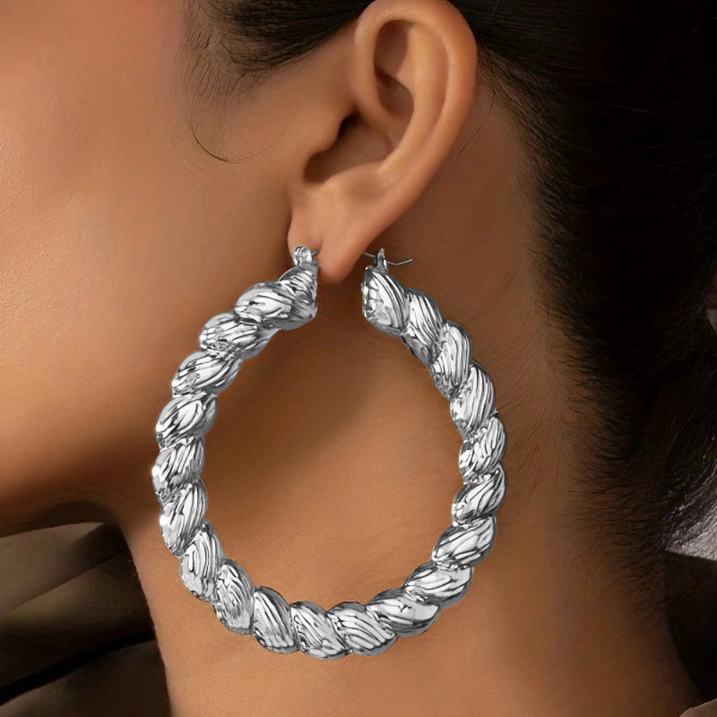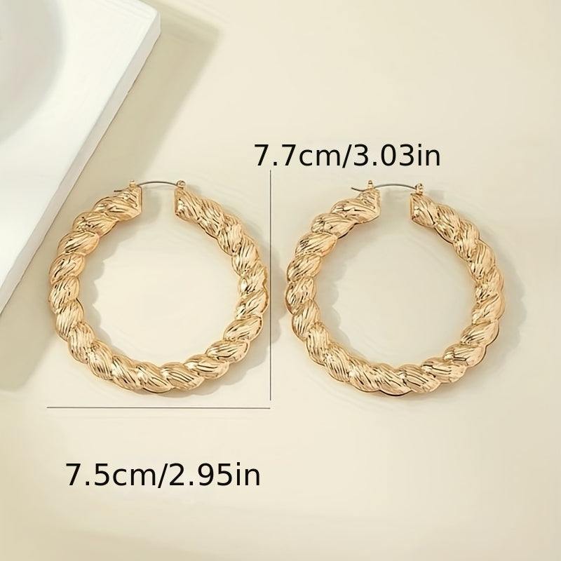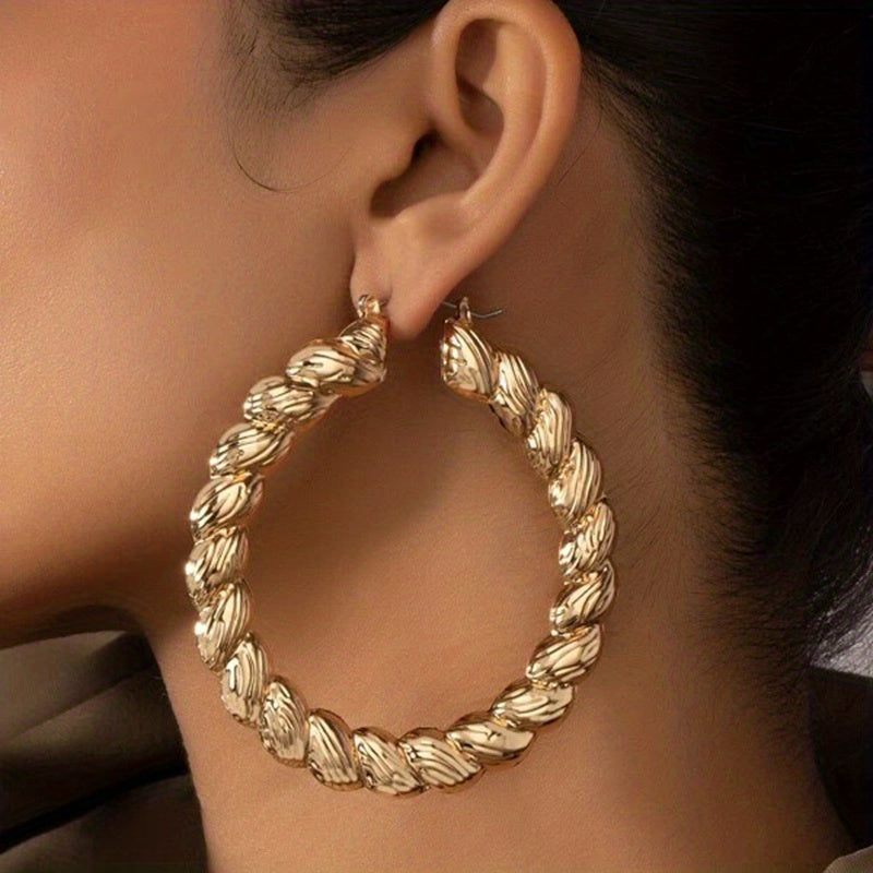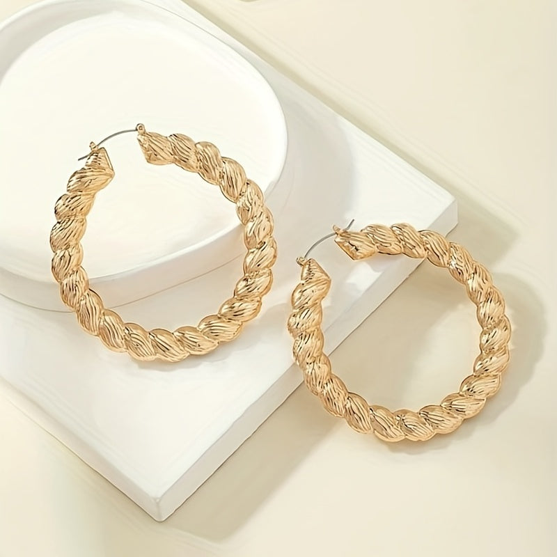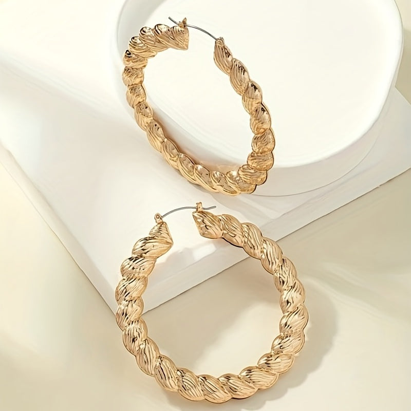 Make a statement with these stunning golden hoop earrings that feature a retro twist design. Perfect for parties, clubs, or engagements.