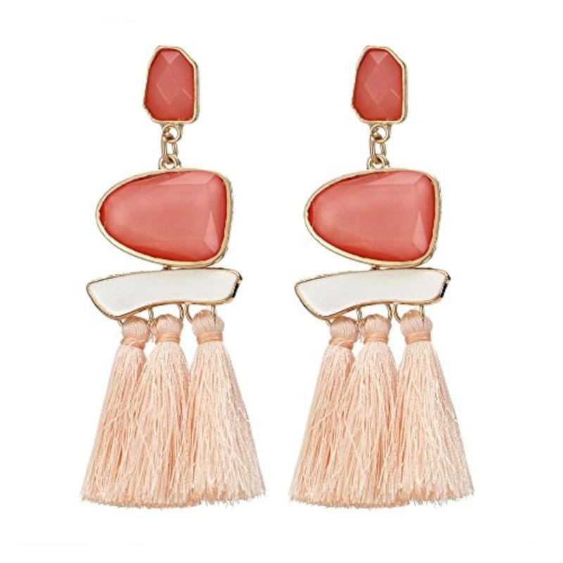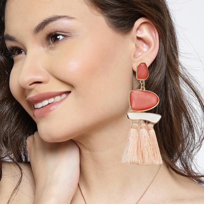Elevate your style with these stunning tassel earrings featuring a fusion of copper plating and agate stones. Perfect for adding a touch of elegance to any outfit.