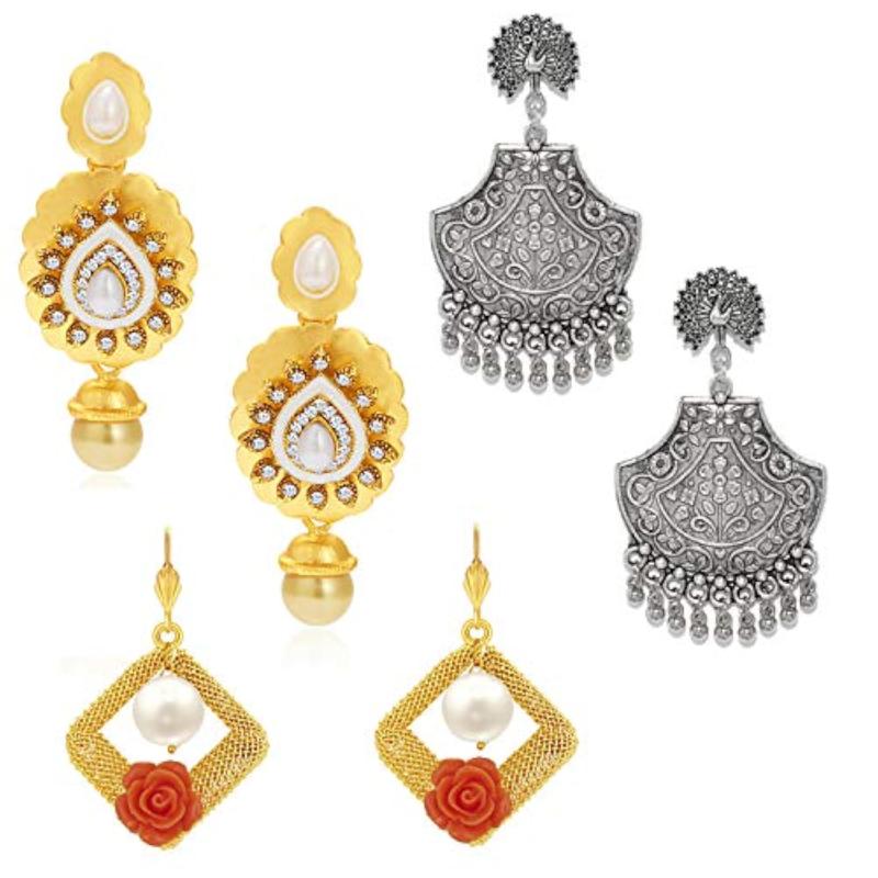 Add a touch of elegance to your look with this stunning combo of oxidised and plated earrings. Perfect for daily wear or special occasions.