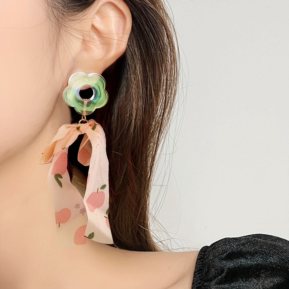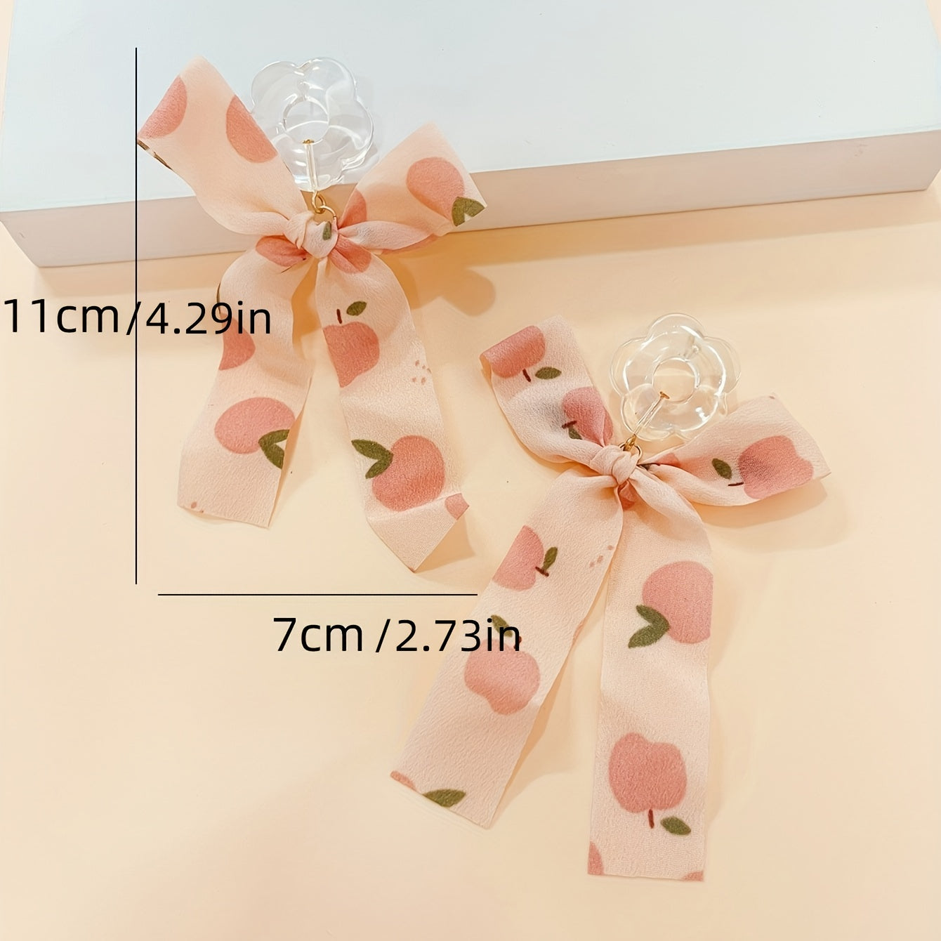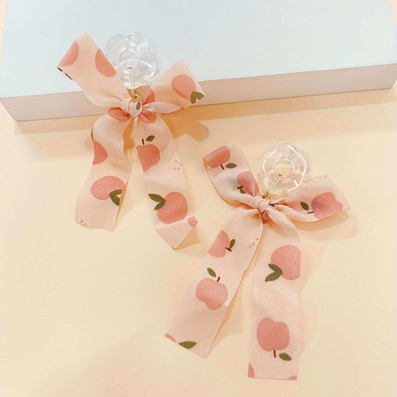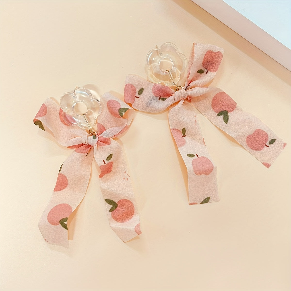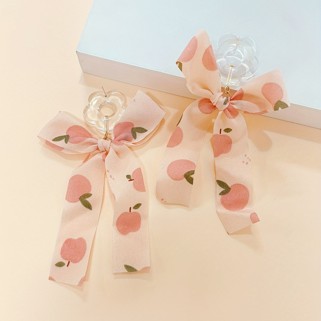 Add a touch of vocation style to your look with these delicate hollow flower earrings featuring a fabric bow dangle. Perfect for gifting or as holiday ornaments.