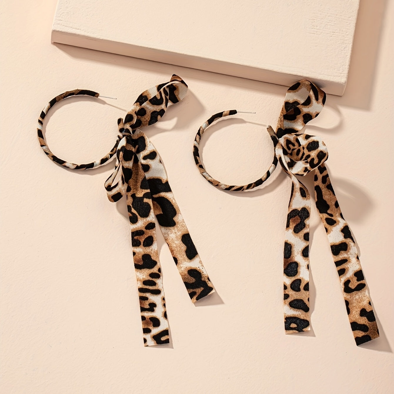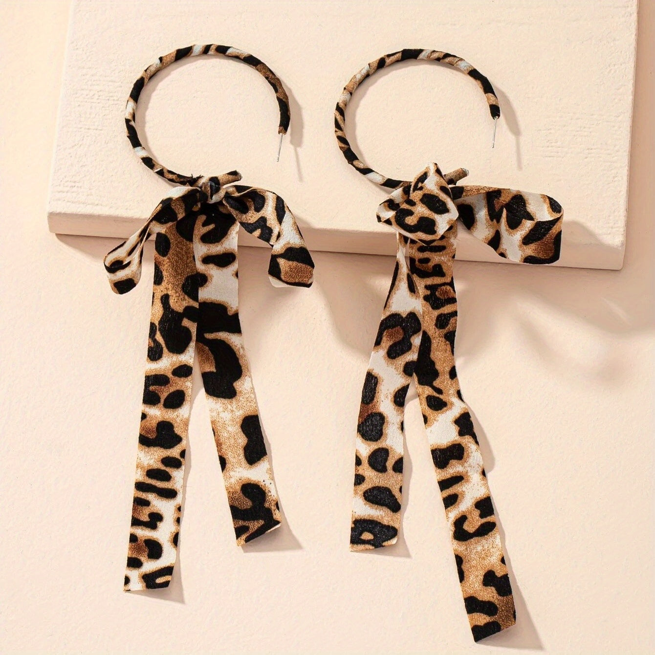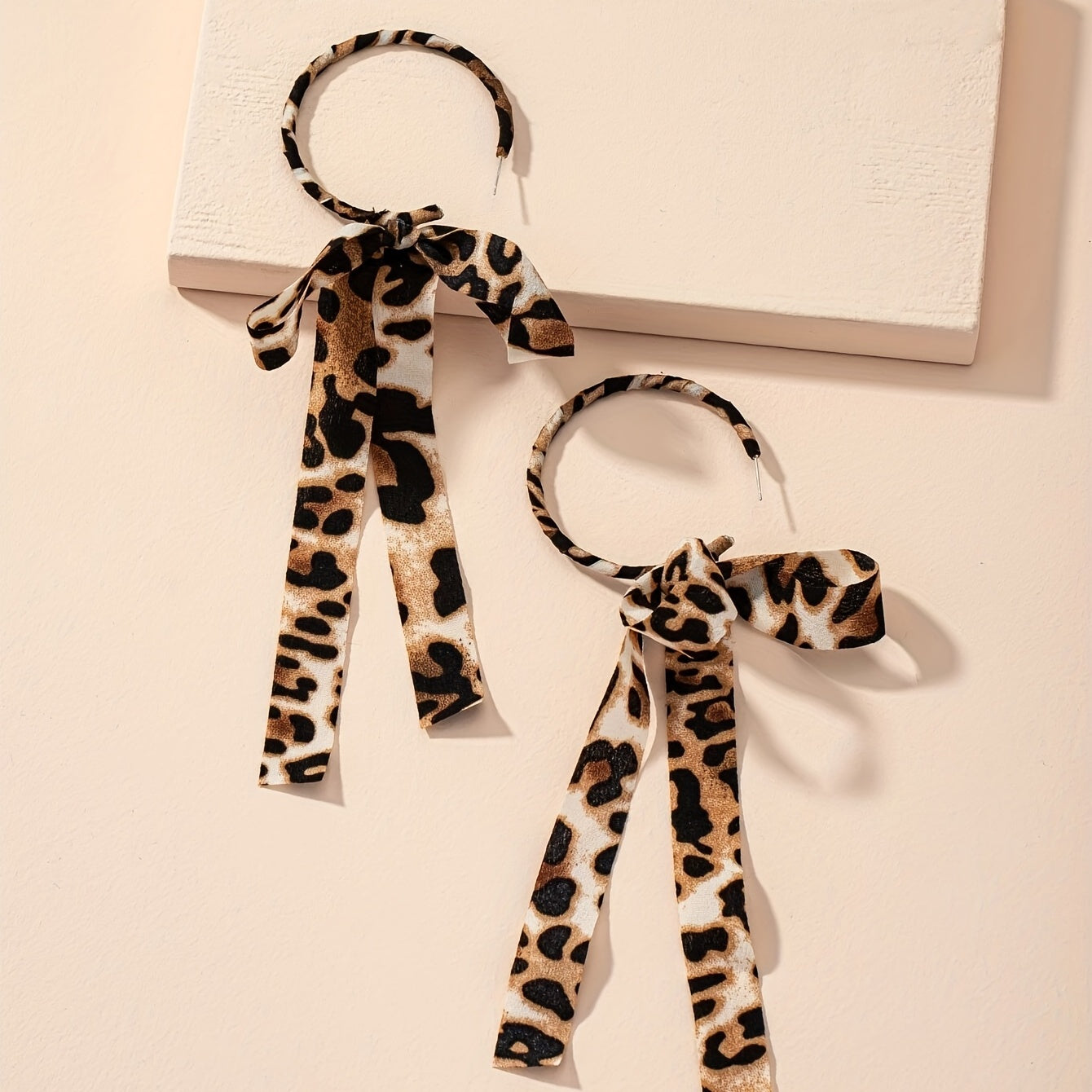 These earrings are perfect for adding a touch of vocation style to your outfit. The exaggerated fabric bowknot design with leopard pattern is ideal for holiday occasions and stage performances.