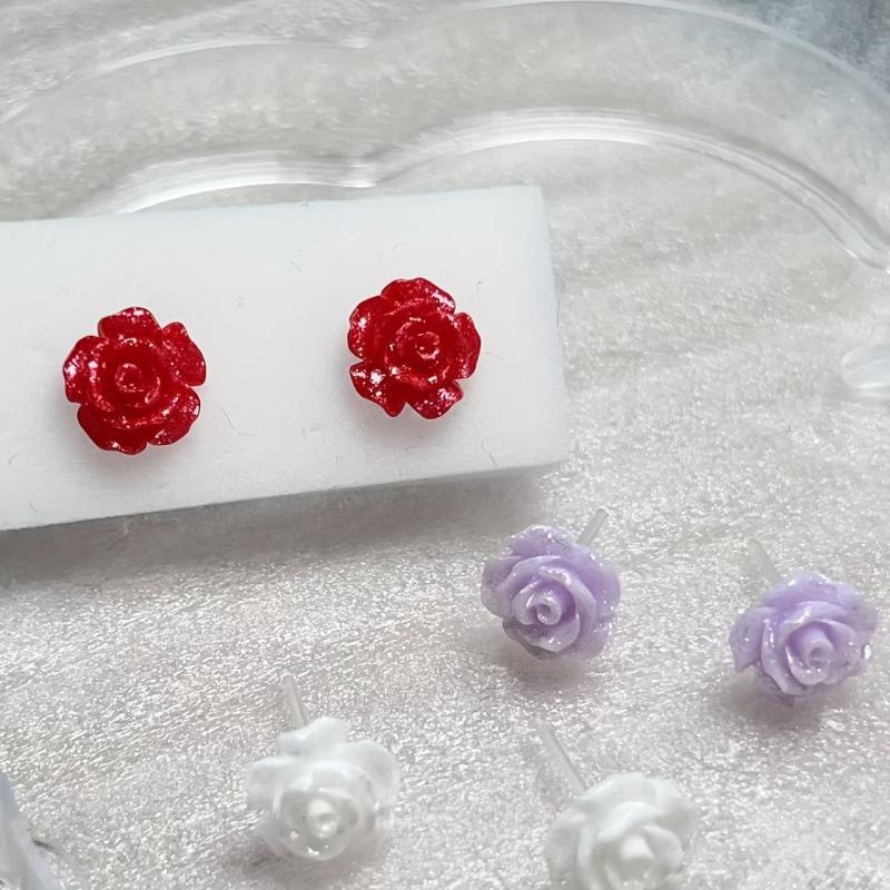 This set includes a pair of elegant Fairy Fine Glitter Rose Plastic Earrings and a pair of versatile daily earrings.