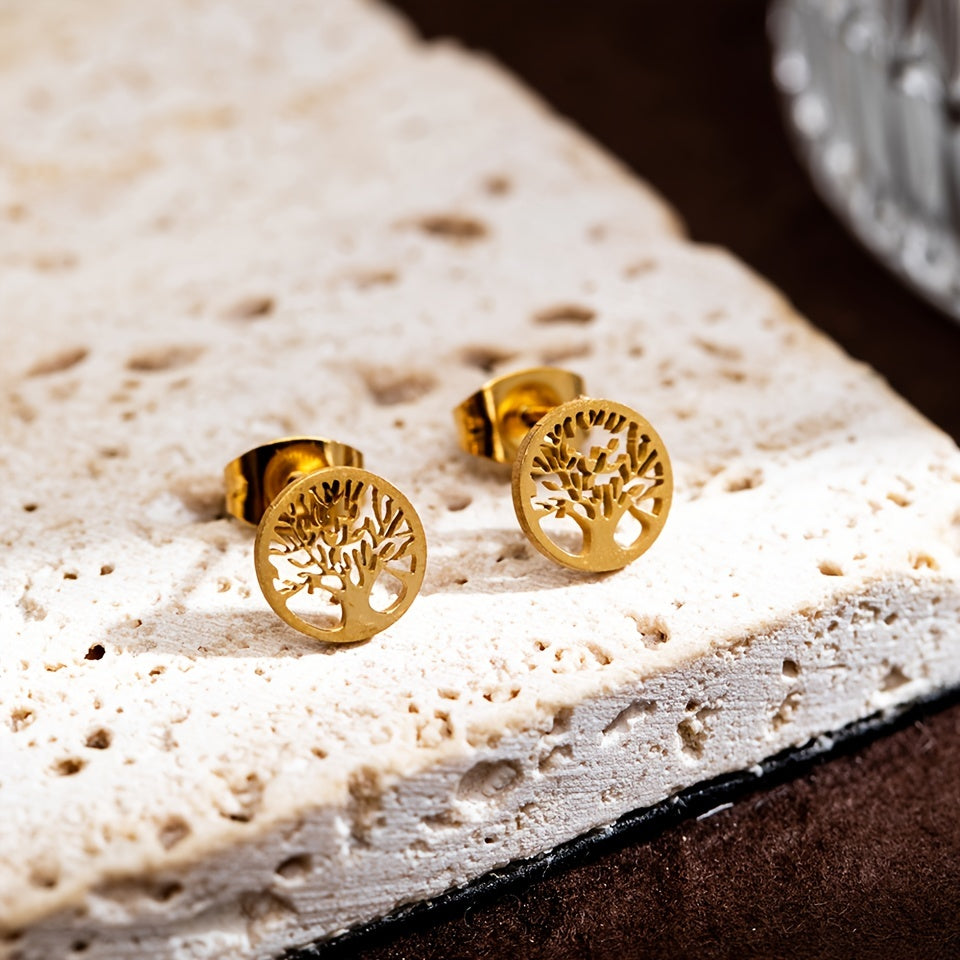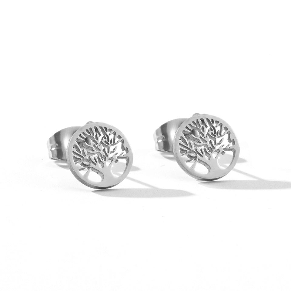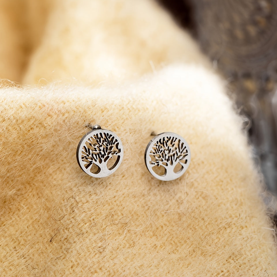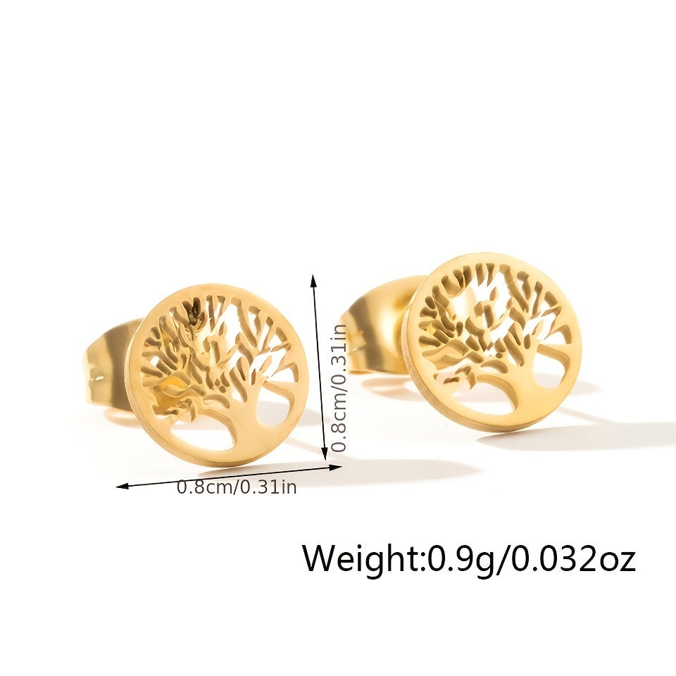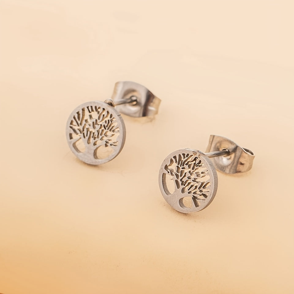 These stunning stainless steel stud earrings feature a family tree of life design, making them a meaningful and elegant accessory for women.